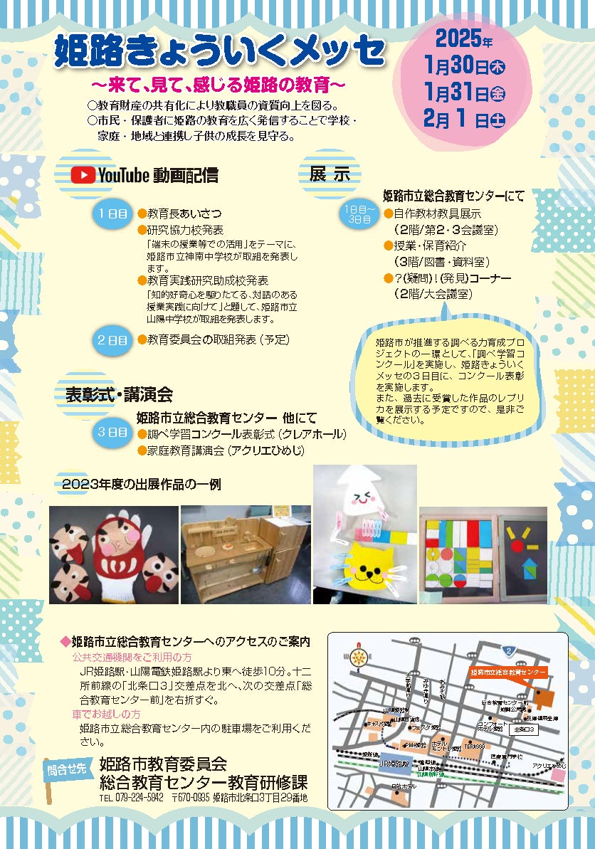 送付先:〒670-8501 姫路市安田四丁目1番地 姫路市生涯学習課 てぃ先生講演会申込
