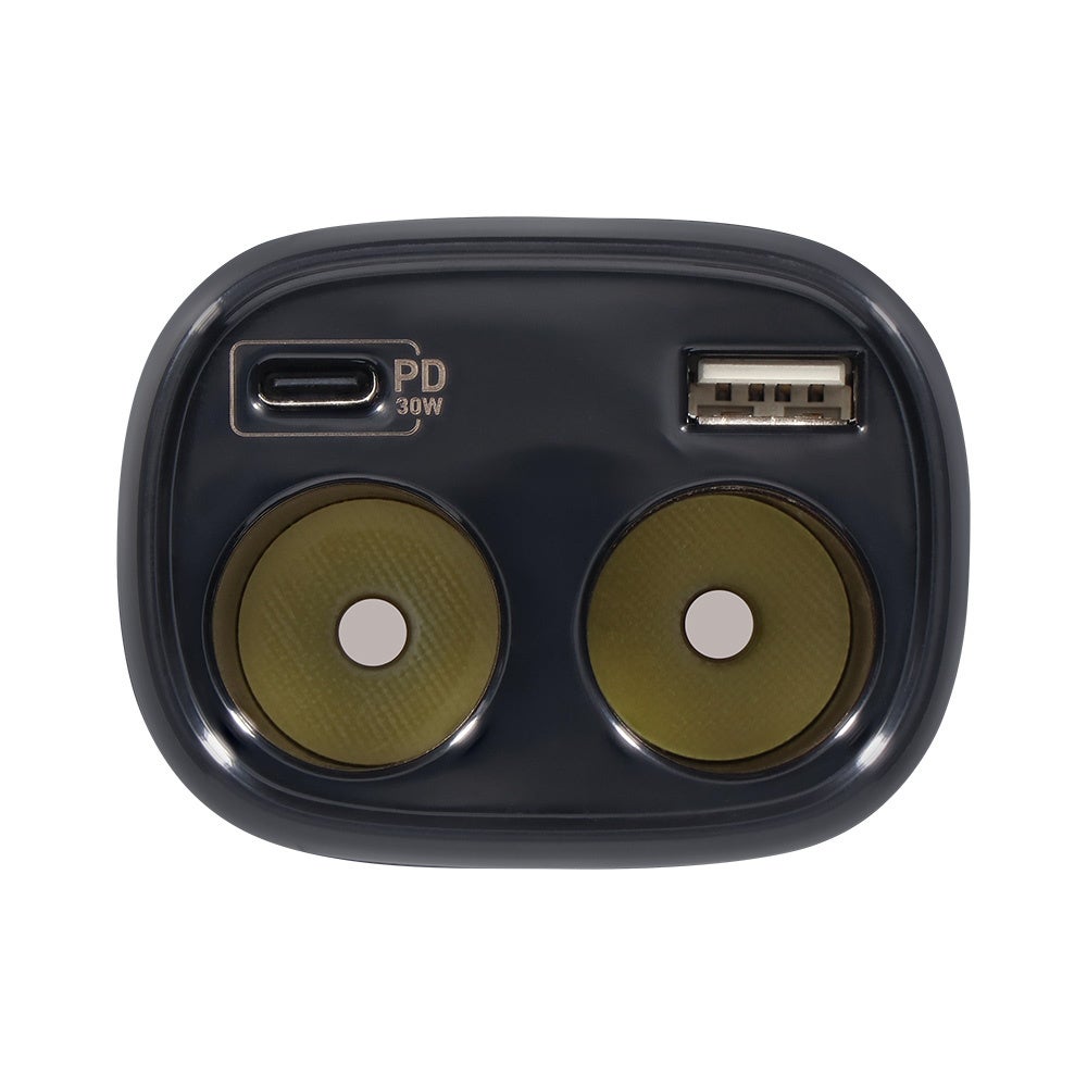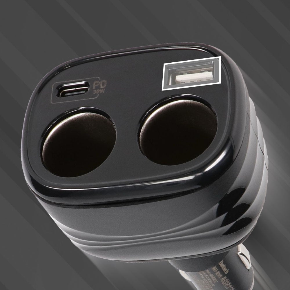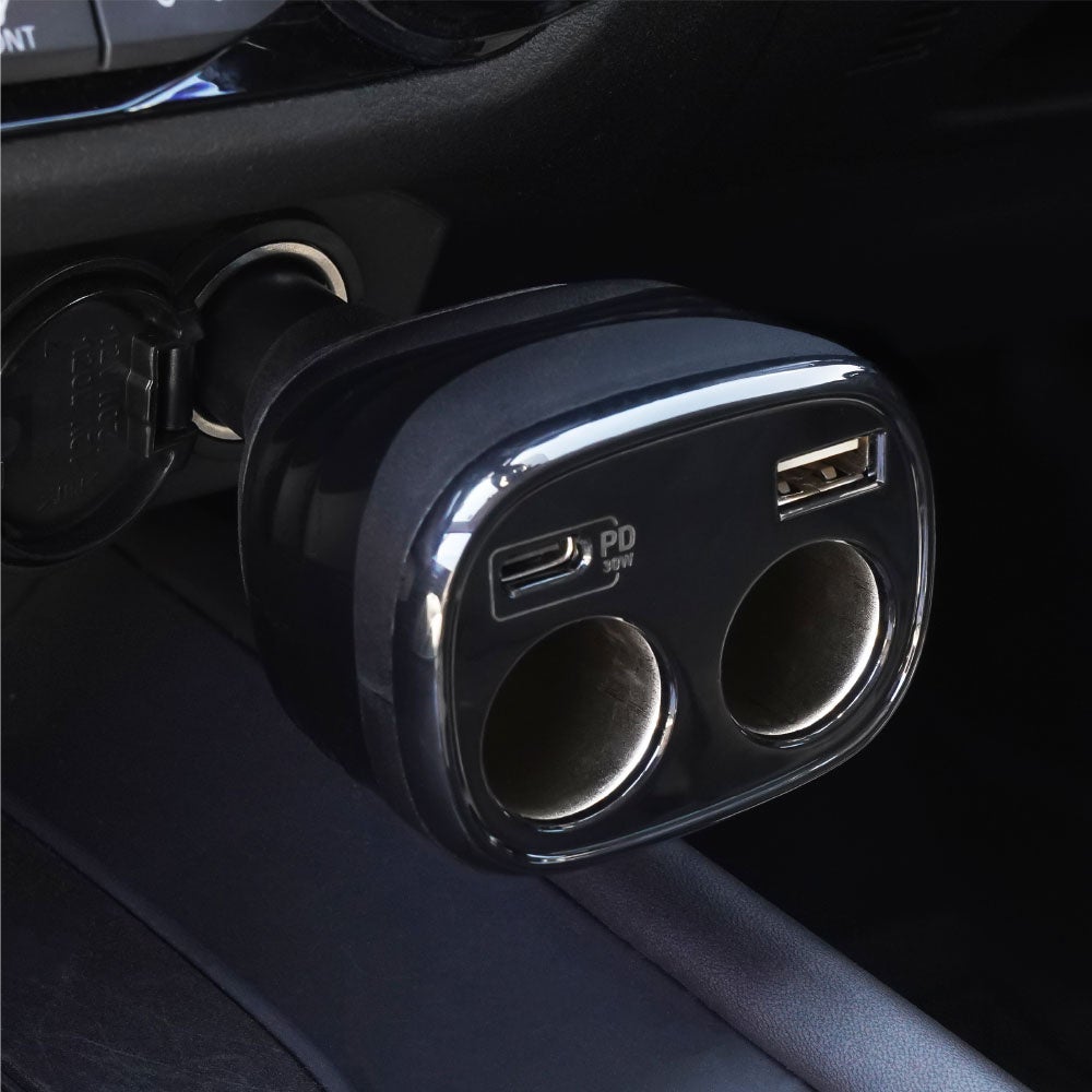 USB Type-Cポートを1基、USB Type-Aポートを1基、アクセサリーソケットを2基増設でき、スマートフォンの充電からドライブレコーダーへの給電などにお使いいただけます。
