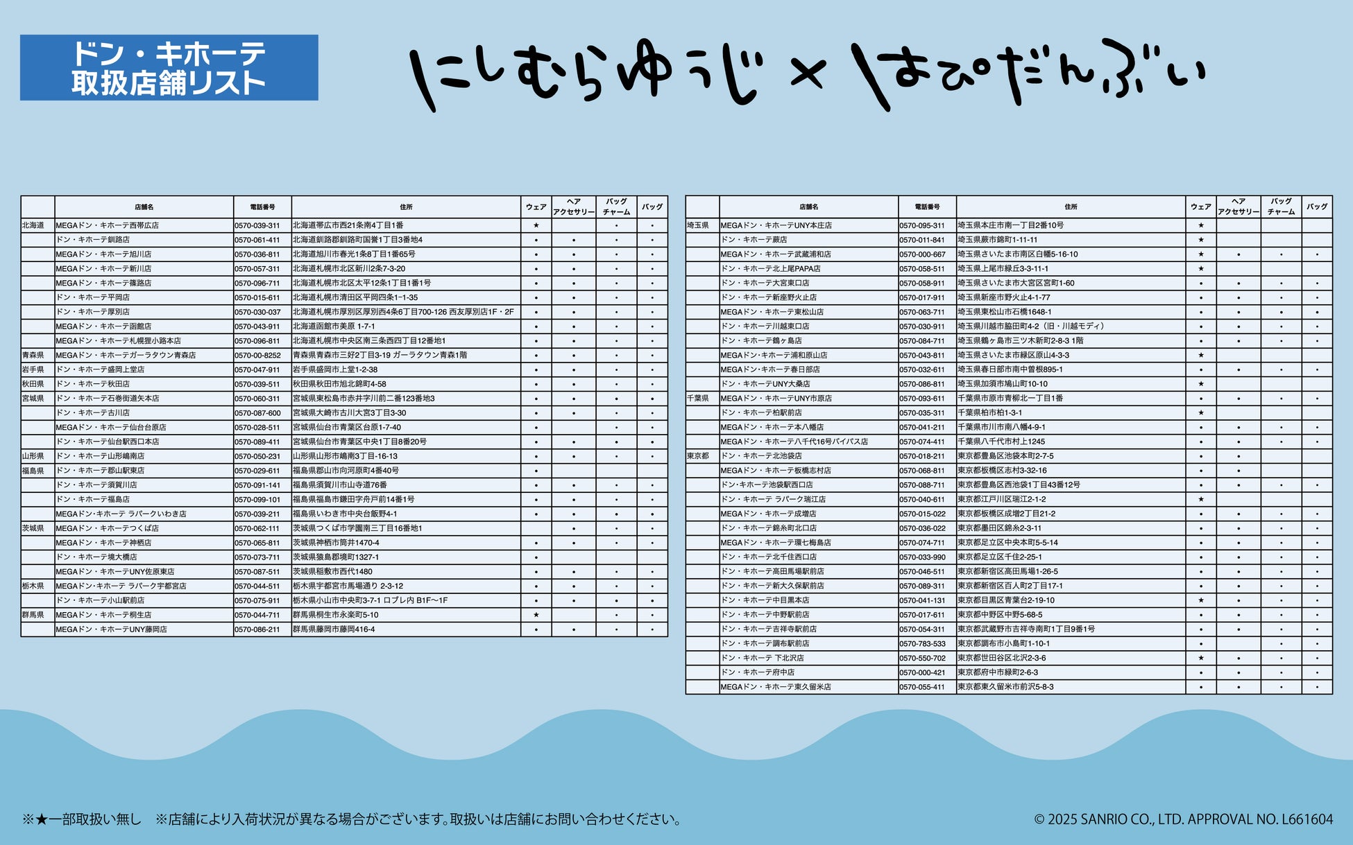 「にしむらゆうじ×はぴだんぶい」コラボアイテムを全国のドン・キホーテでゲットして、かわいいがいっぱいの毎日をお過ごしください♡