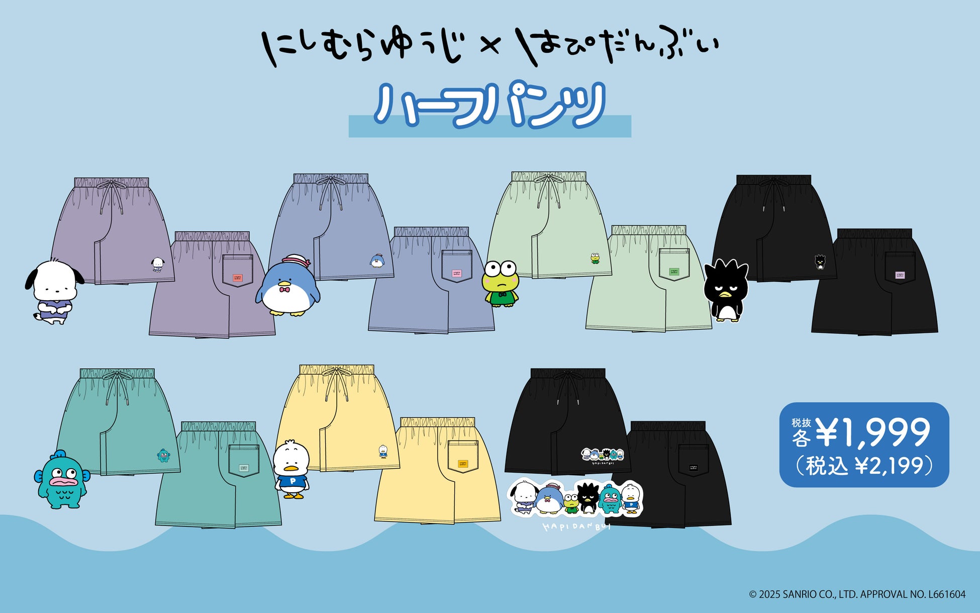 「にしむらゆうじ×サンリオキャラクターズ」コラボ第2弾! 「にしむらゆうじ×はぴだんぶい」の限定商品「全16アイテム」が全国の「ドン・キホーテ」、「アピタ・ピアゴ」店舗で6/28(土)より発売!