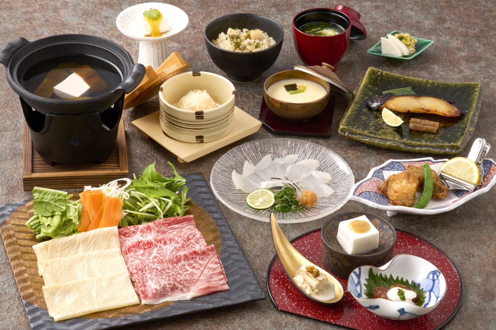 「黒毛和牛と湯葉のしゃぶしゃぶ」とふぐや旬の食材を使用したオススメ宴会コース
