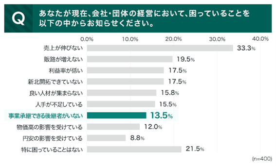 87.5%が後継者未定、事業承継を課題に感じている経営者は13.5%