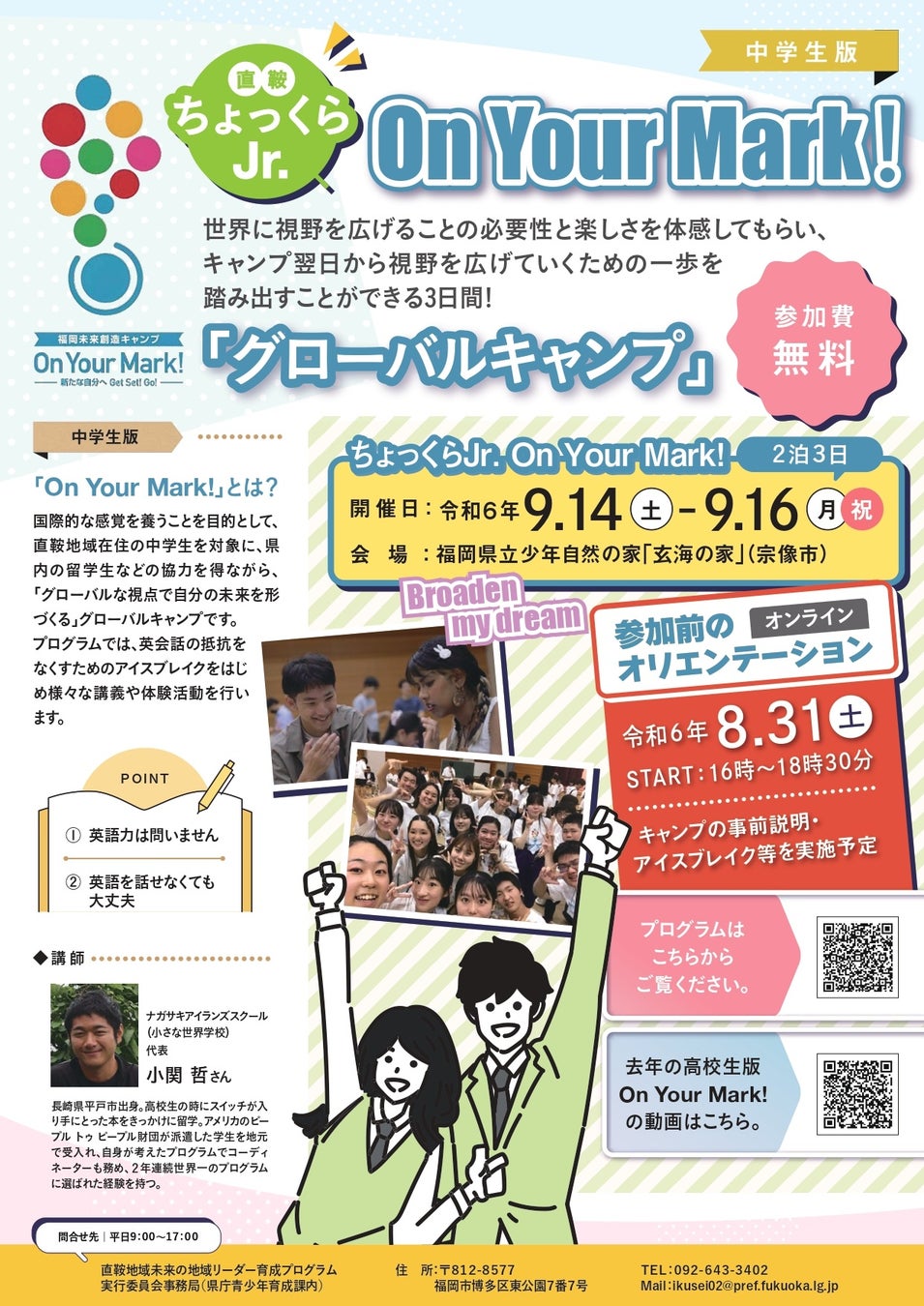 未来の地域リーダー育成プログラム「ちょっくらJr. On Your Mark!」を開催します!