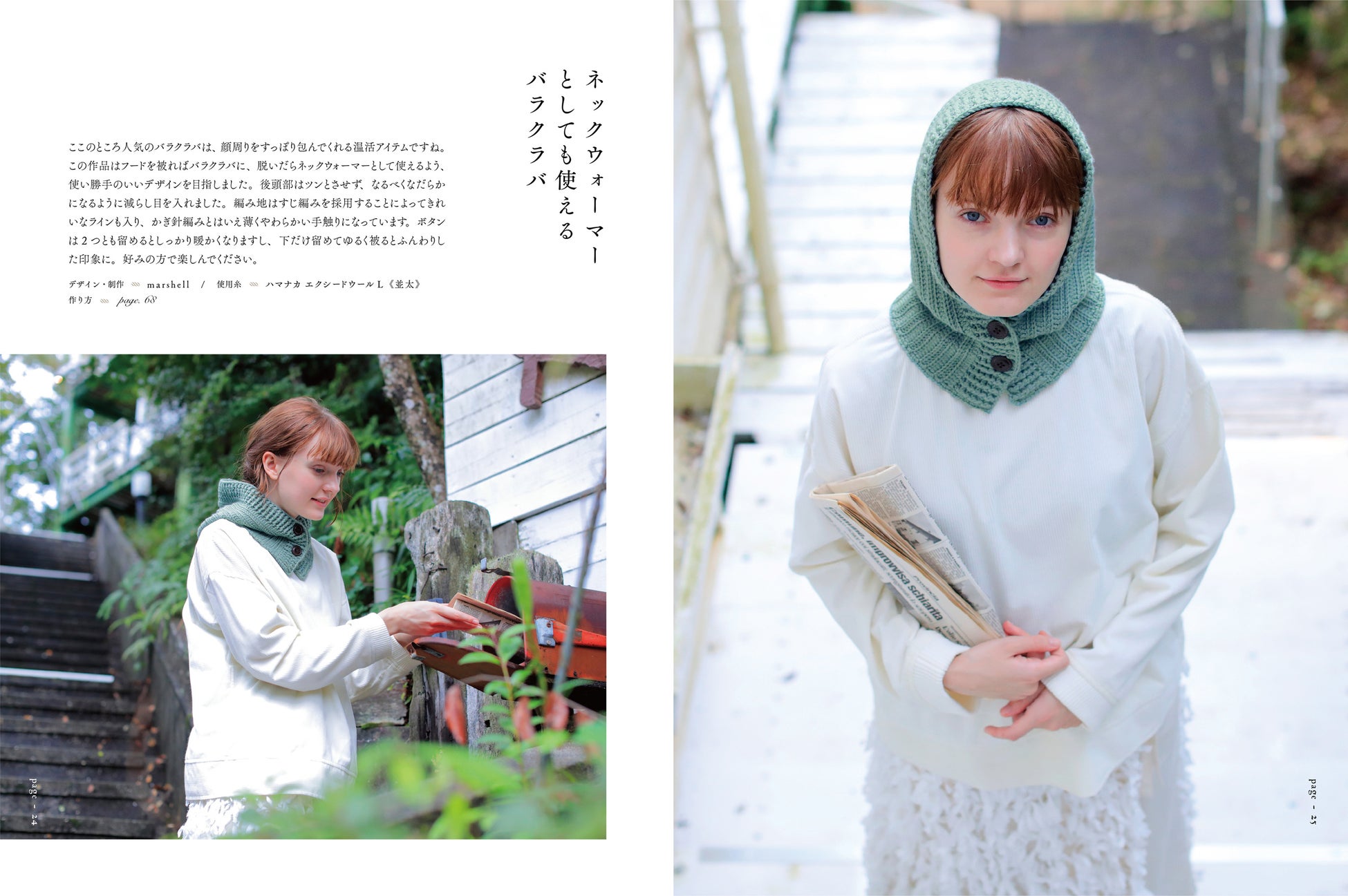 かぎ針で編むバラクラバは、脱いだらネックウォーマーにもなるデザイン
