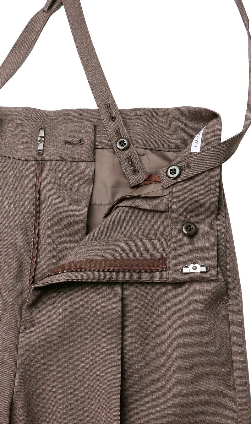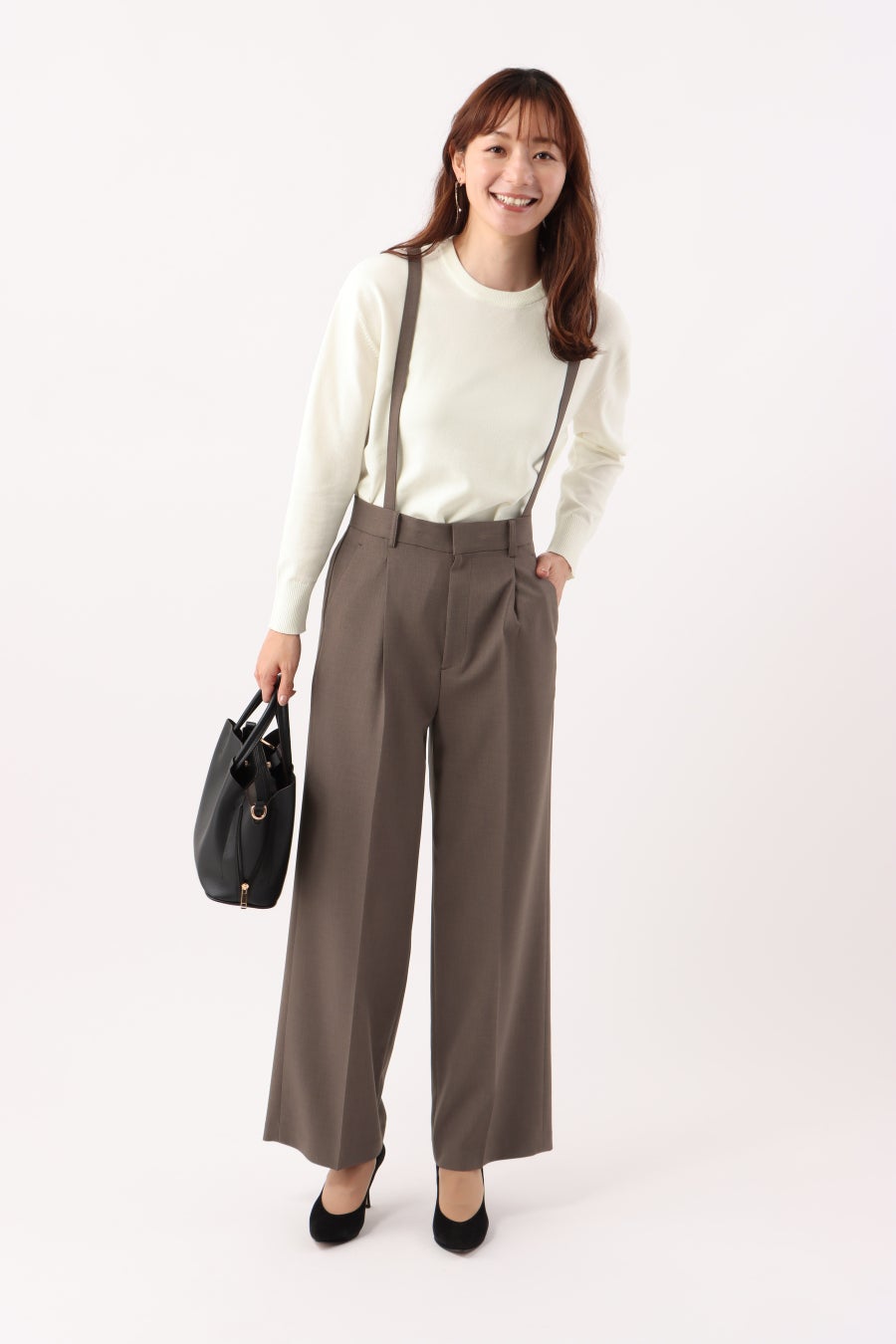 「秋らしい服装をしたいけれどまだまだ暑い…」というお客様の声にお応えし、気温が下がりきらない9~10月でも色から秋を感じられるよう、ブラウンの中でも重たい印象にならないモカを採用しました。また、仕事着の多様化でスーツを着ないシーンが増える中で、1セットあるとどんな場面にも対応できる万能ブラウスセットアップとなるよう、パンツの裾幅やサスペンダーのボタン位置、ブラウスやスカートの着丈など、とことんこだわって作りました。