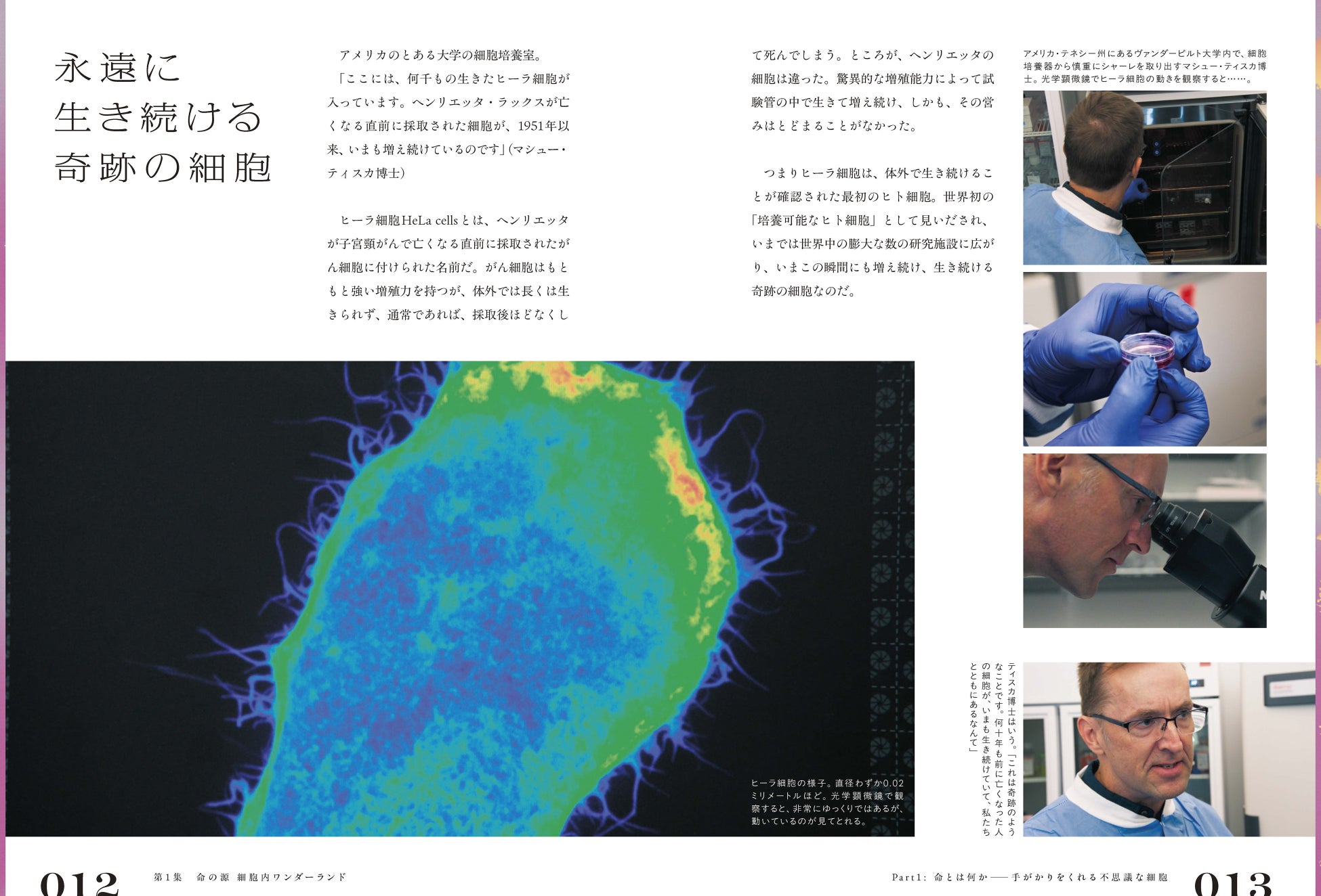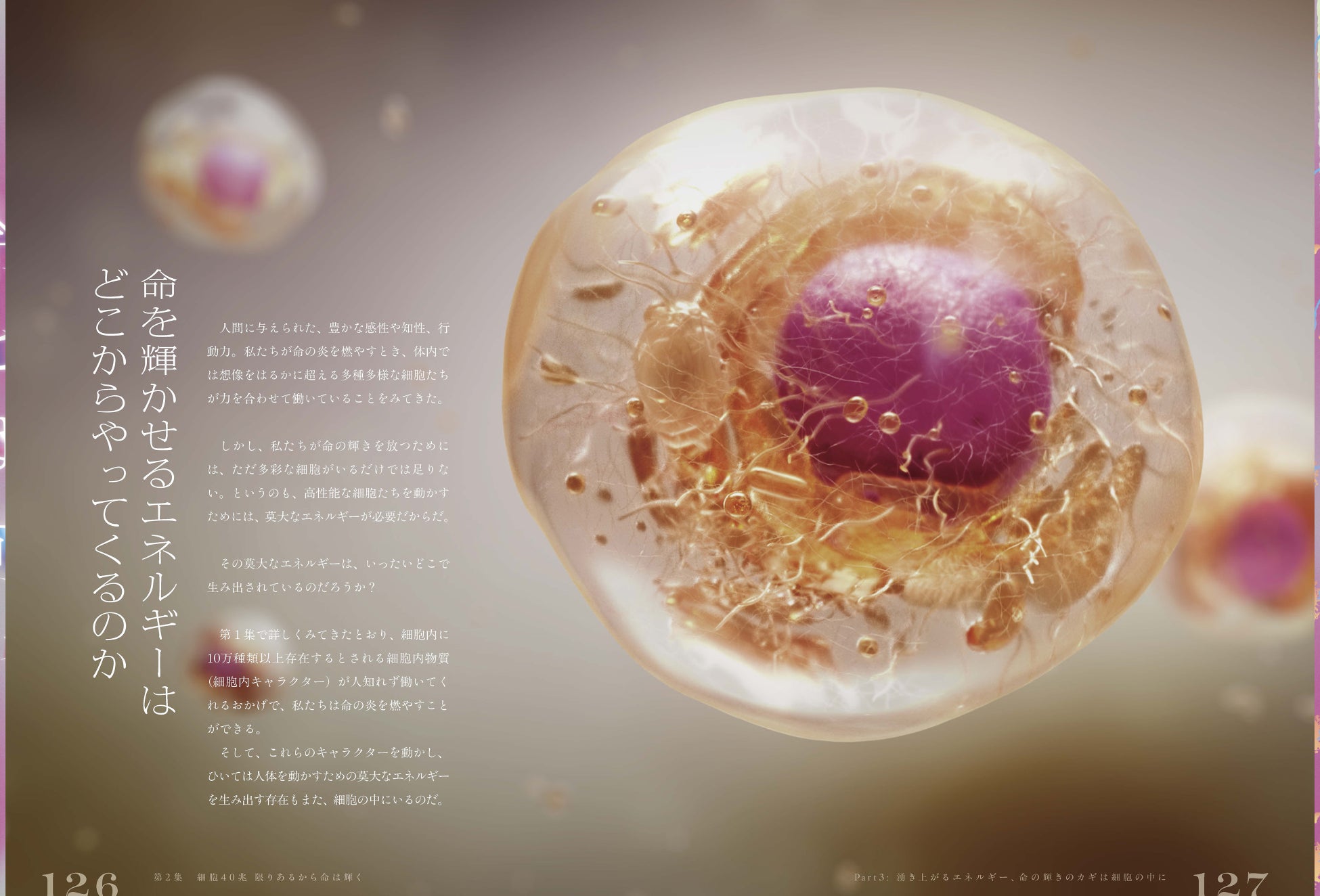 超高画質CGで細胞内世界を紹介する書籍限定特集ページ「華やかな細胞世界」を収録