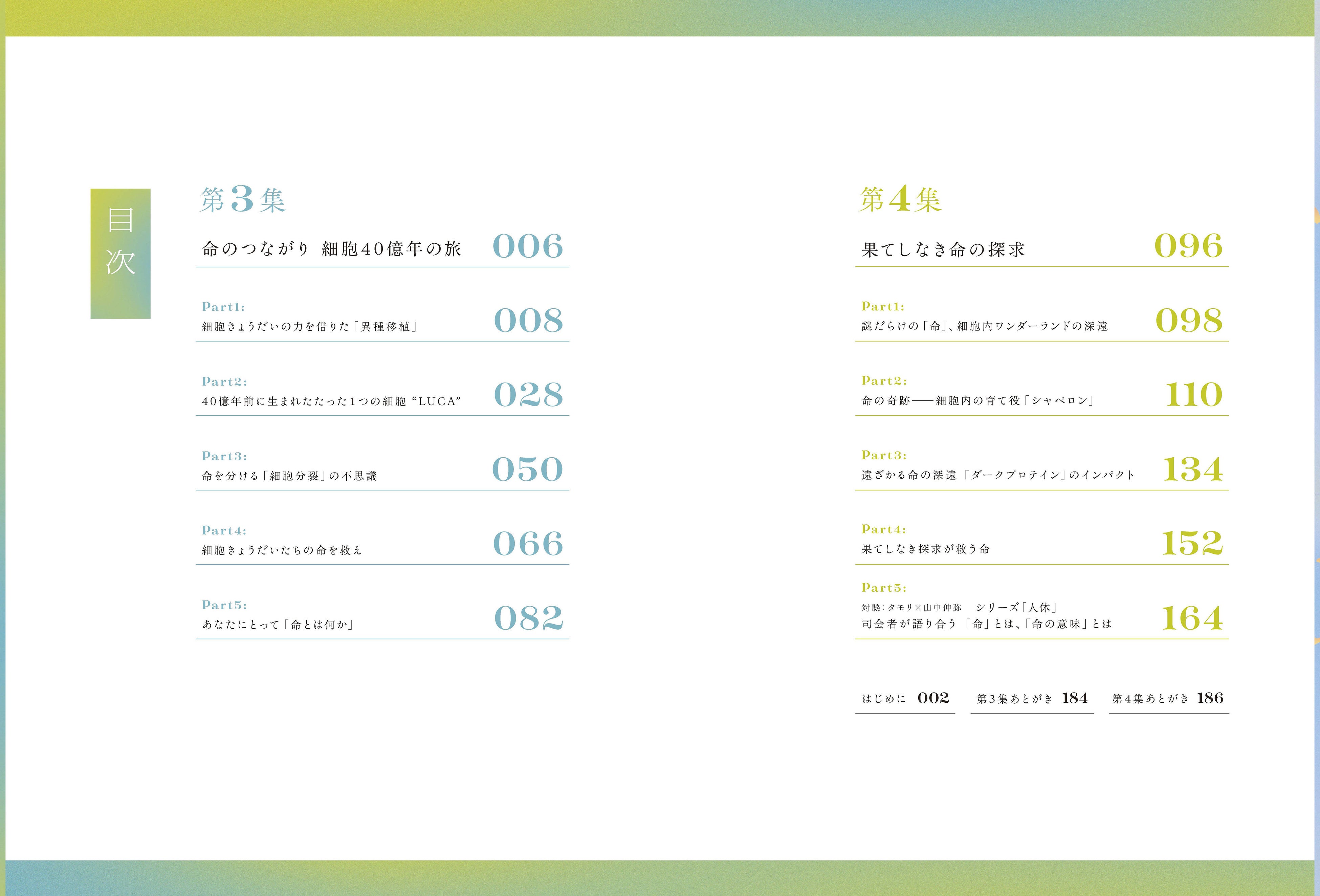 国民的お笑いタレントで博識のタモリさんと、ノーベル賞科学者山中伸弥さんのW司会で2017年にスタートしたNHKの大型シリーズ「人体」。2025年4月から6月にかけて放送された最終章「人体Ⅲ」のテーマは、ずばり「命」。本書は番組の興奮そのままに、最新科学が解き明かす「命のメカニズム」を、最新顕微鏡による驚きの実写や超高精細CGとともにわかりやすく紹介します。