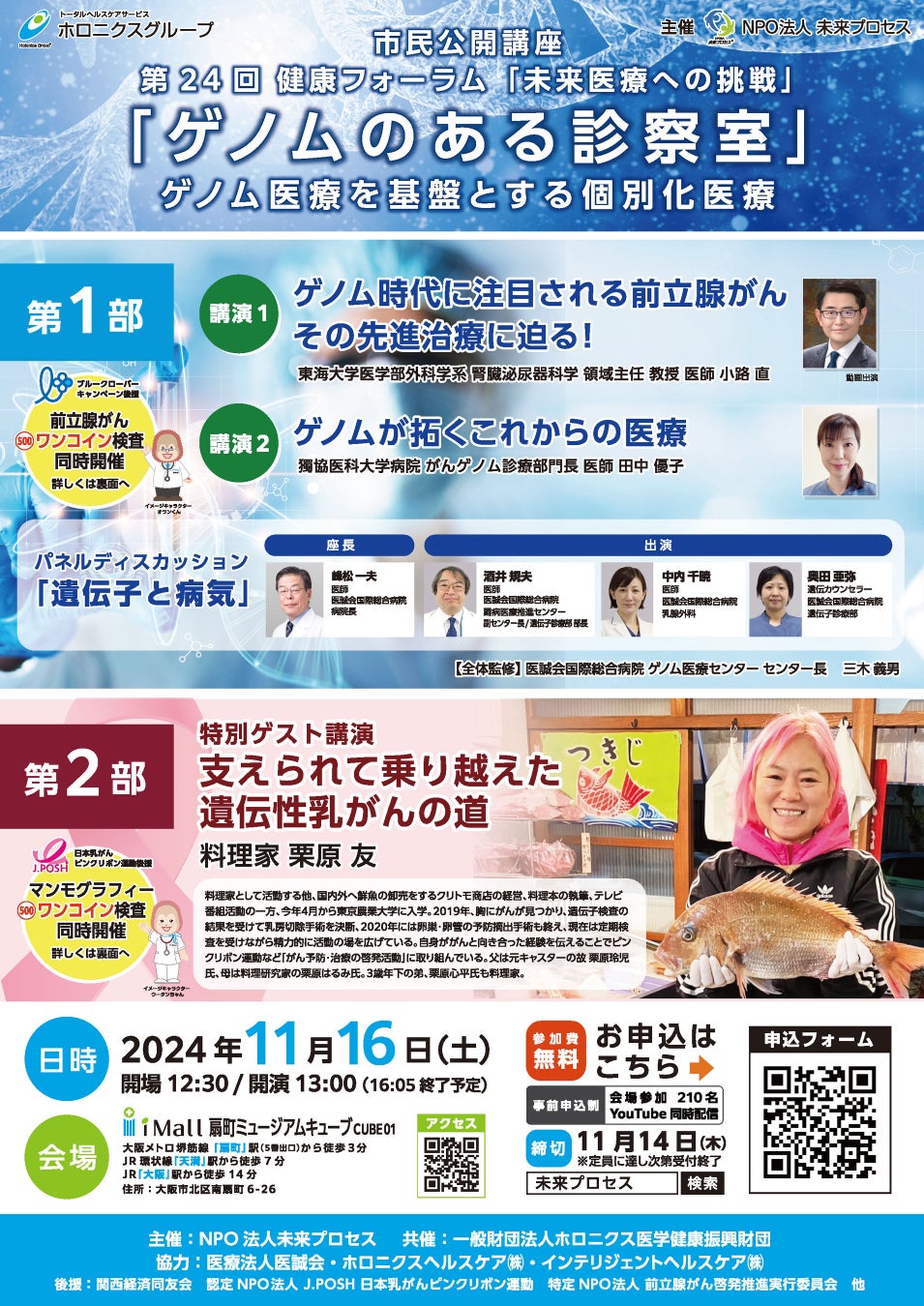 今回の動画は第24回健康フォーラム「未来医療への挑戦~ゲノムのある診察室~」に向けての動画ともなっています。