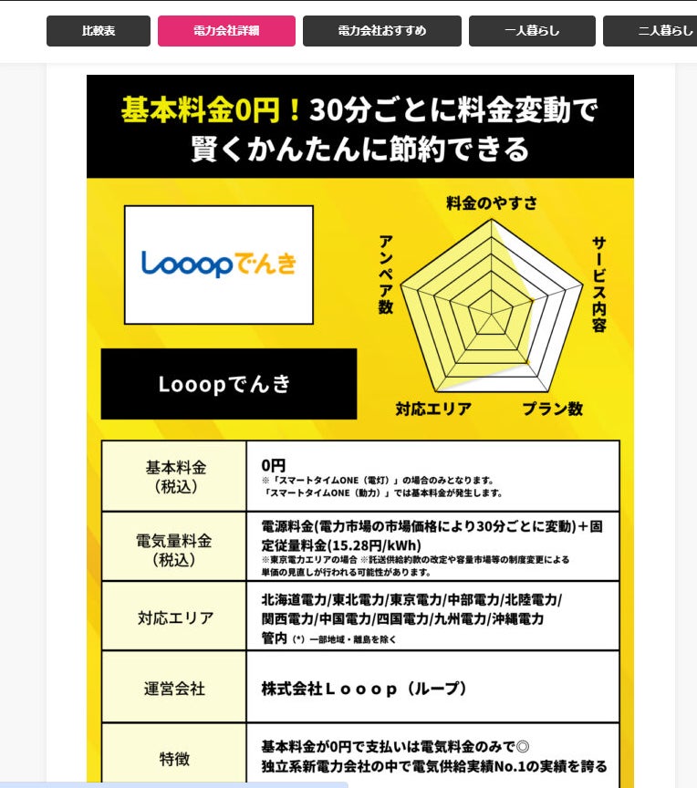 2024年1月23日(木)より、電力カテゴリの記事内でスクロールの手間を軽減するために「ページ内リンク機能」を実装しました。ページ内上部に表示されている「比較」や「詳細」のボタンをタップすると、簡単に商品比較箇所に遷移することができます。