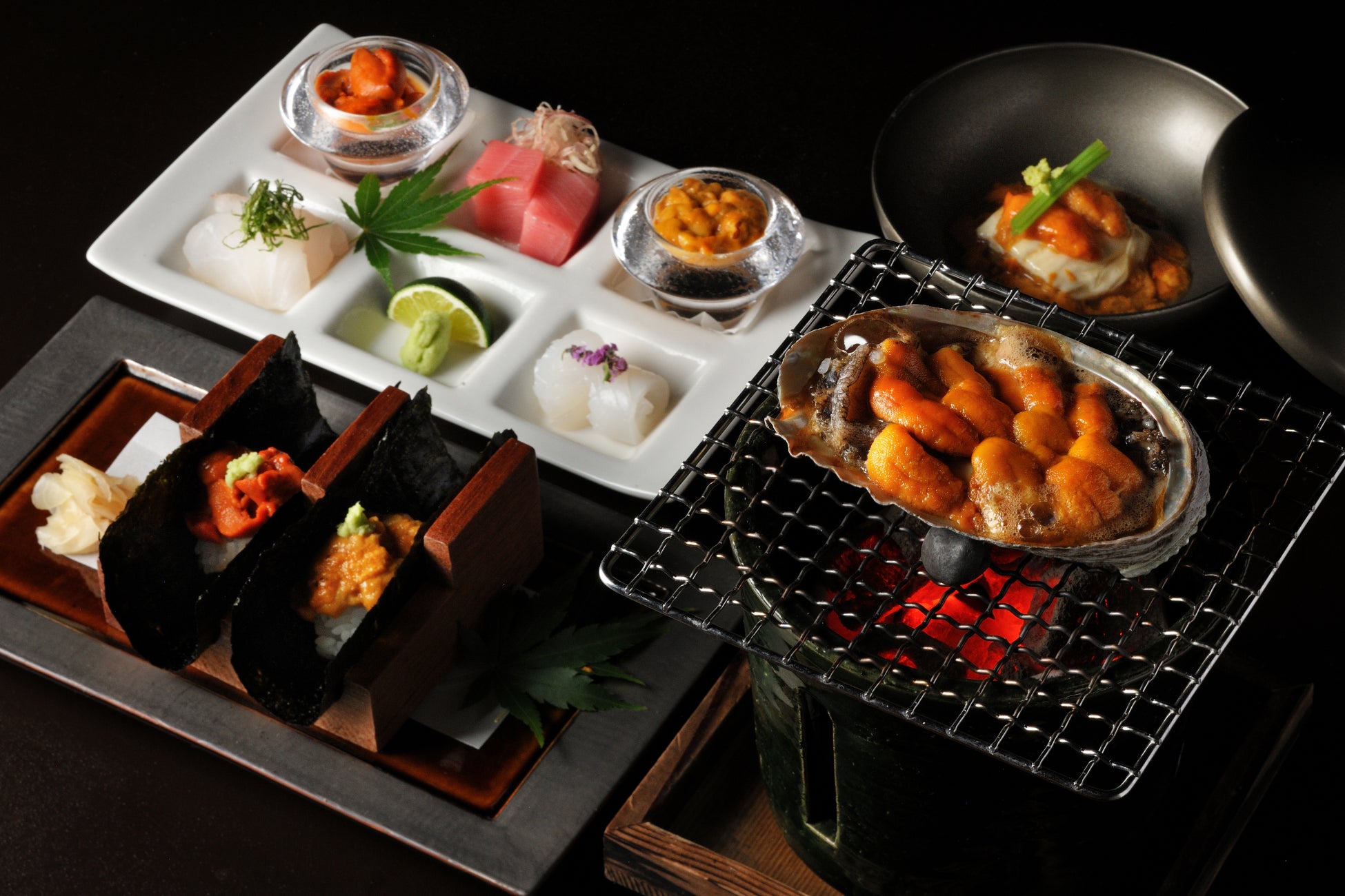 壱岐リトリート 海里村上は、この壱岐島に位置する全12室の温泉旅館です。『ミシュランガイド福岡・佐賀・長崎 2019 特別版』では、離島で唯一「5パビリオン(豪華で最高級の旅館)」として紹介されています。全室オーシャンビューの客室には、約1,700年の歴史を持つ自噴泉から引いた高張性の源泉掛け流し露天風呂を完備。「日本の夕陽百選」に選ばれた湯本湾の絶景とともに、壱岐ならではの雲丹・鮑・壱岐牛など厳選食材を用いた会席料理をご堪能いただけます。