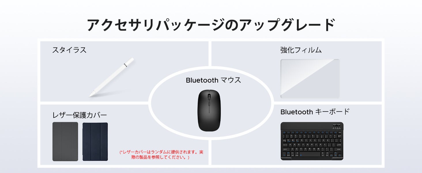 2、保護ケース & 強化ガラスフィルム: 日常生活での衝撃や落下、画面のキズから大切なタブレットをしっかりガード。購入直後から保護性能を発揮します。