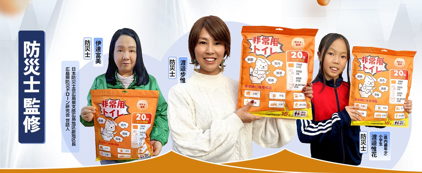 伊達富美氏、渡邉歩惟氏、渡邉惟花氏ら現役防災士が運用フローを全面監修。災害発生時でもストレスのないトイレ環境を実現する、誰でも確実に使用できる設計です。
