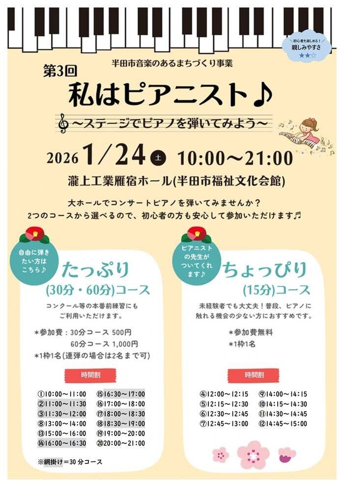 【愛知県半田市】大人気ピアノ体験イベント『私はピアニスト~ステージでピアノを弾いてみよう~』を開催