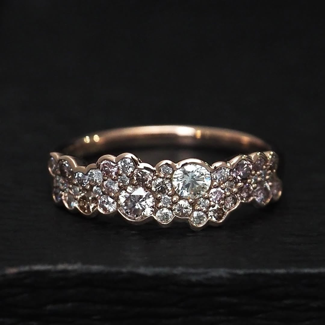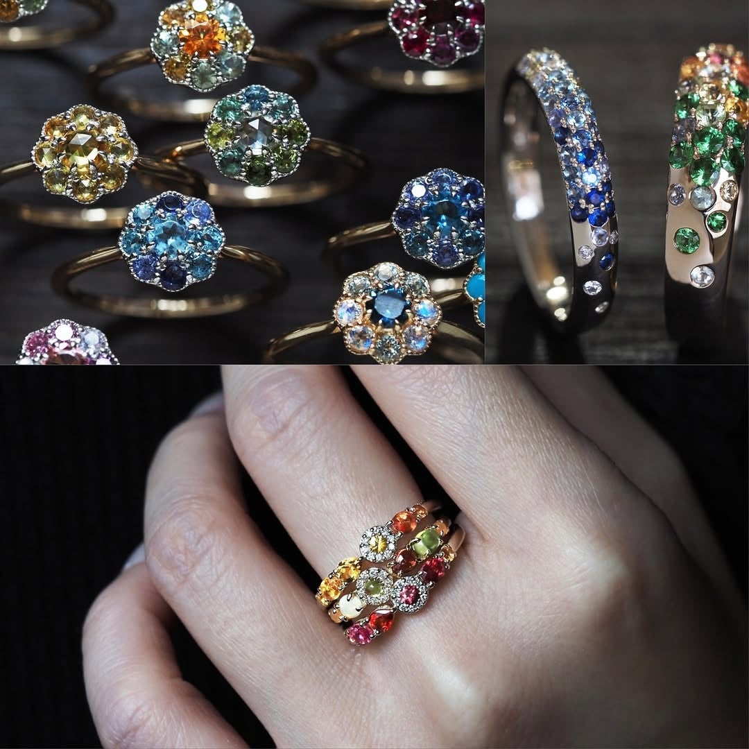 期間限定となりますが、シノワズリ配色はオーダー対応により、お客様のお指に合わせてお仕立てできます。宝石がぎゅっと詰まった豊かな表情と、半レール留めならではのなめらかな着け心地を、店頭でお手に取ってお確かめください。