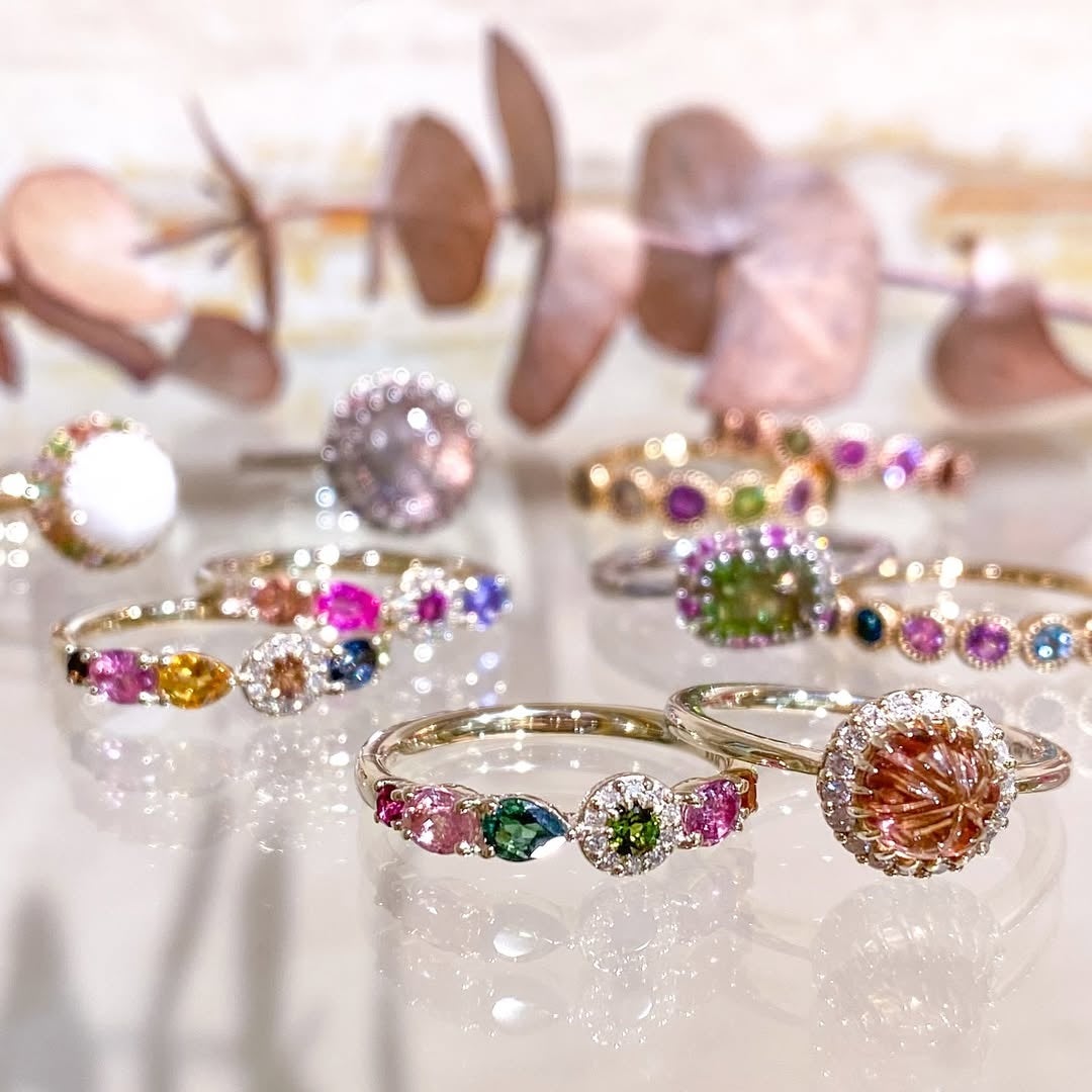 今月は10月の誕生石である「トルマリン」と「オパール」をあしらったジュエリーを紹介いたします。
