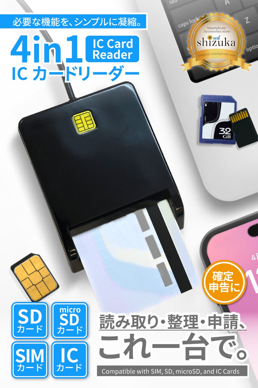 e-Tax 申請やデータ整理が自宅で簡単に。IC ・ SIM ・ SD ・ microSD カードに対応した便利な ICカードリーダー。