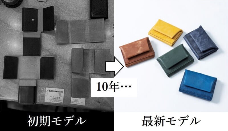 このコンパクトウォレットが生まれたのは実は10年前。イタリアのピッティ・ウオモでも注目を浴びた特殊構造のミニウォレットは、時代背景に併せて進化し続けてきました。