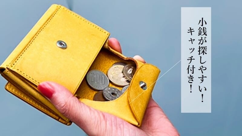 小銭をガバっと出して、探しやすく!更に絶妙に計算されたホルダーで、小銭が落ちることはありません。