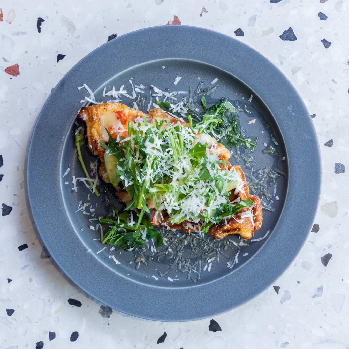 スモークサーモンの塩っ気、アボガドの濃厚さにクロッフルの甘みが絶妙なハーモニー。
