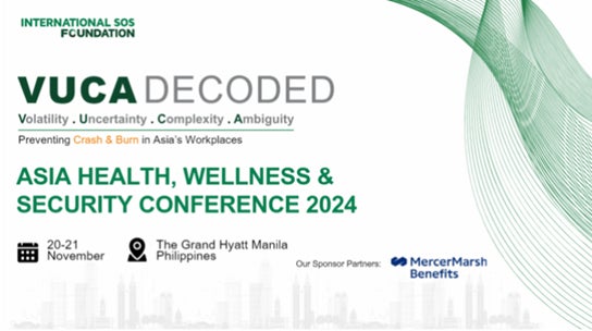 インターナショナルSOS財団(本部:オランダ)は、フィリピンのボニファシオ・グローバル・シティのグランドハイアットマニラにて、2024年11月20日と21日に「アジア・ヘルス・ウェルネス・セキュリティ・カンファレンス2024」を開催致します。