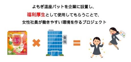 女性の不調に温めることで寄り添う、女性用下着に貼るタイプの温熱パット「よもぎ温座パット」を主軸とした福利厚生パッケージを、企業様向けに販売。