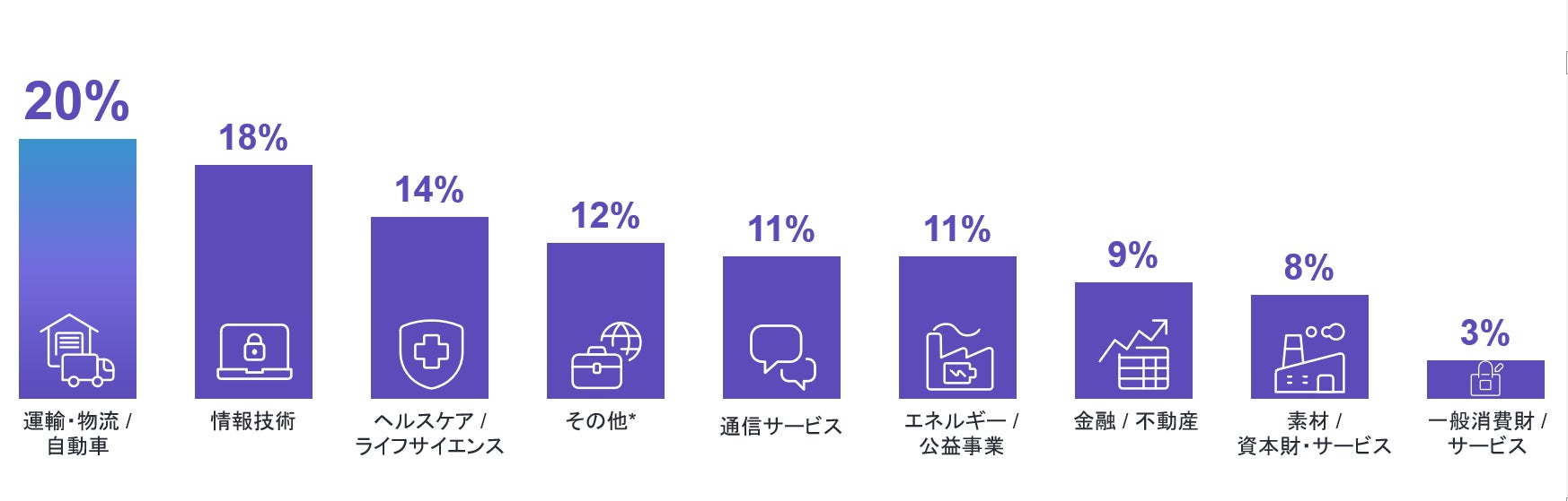 ※² 9業種:「ヘルスケア / ライフサイエンス」「情報技術」「金融 / 不動産」「運輸・物流 / 自動車」「素材 / 資本財・サービス」「エネルギー /公益事業」「一般消費財 / サービス」「通信サービス」「その他(政府・公共機関、非営利団体・NGO・慈善団体・宗教団体、 その他産業、その他運輸・物流・自動車関連産業、教育機関、農業・漁業」