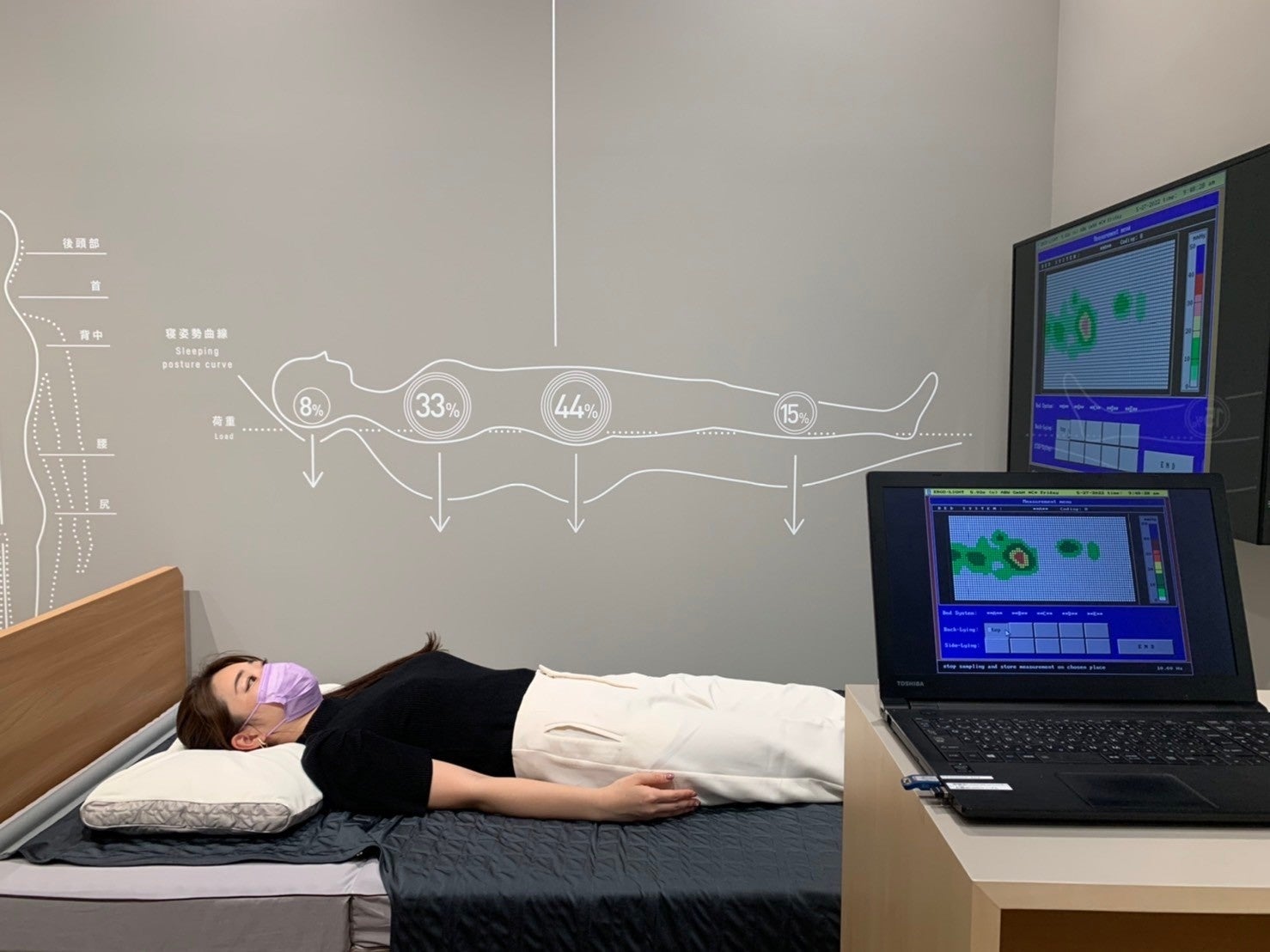 当社の最新技術による寝具測定ツールで、お客様一人ひとりに合った寝具をご提案。プロのアスリートと同じ寝具測定をフルセットで体験できます。