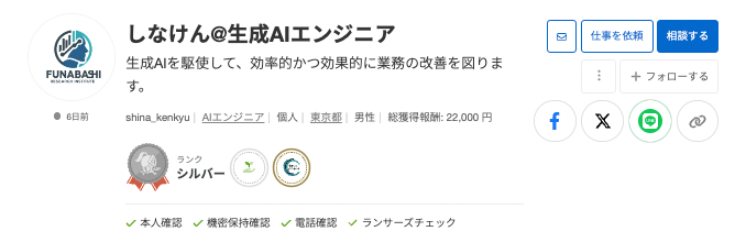 (※)「認証バッジ」とは:専門性がある方や高いスキルを持つ方など、ランサーズが定める特定のスキルを持つフリーランスに付与され、フリーランスマッチングプラットフォーム「Lancers」のプロフィールに表示されます。スキルや信用の可視化により新たな仕事獲得に繋がります。