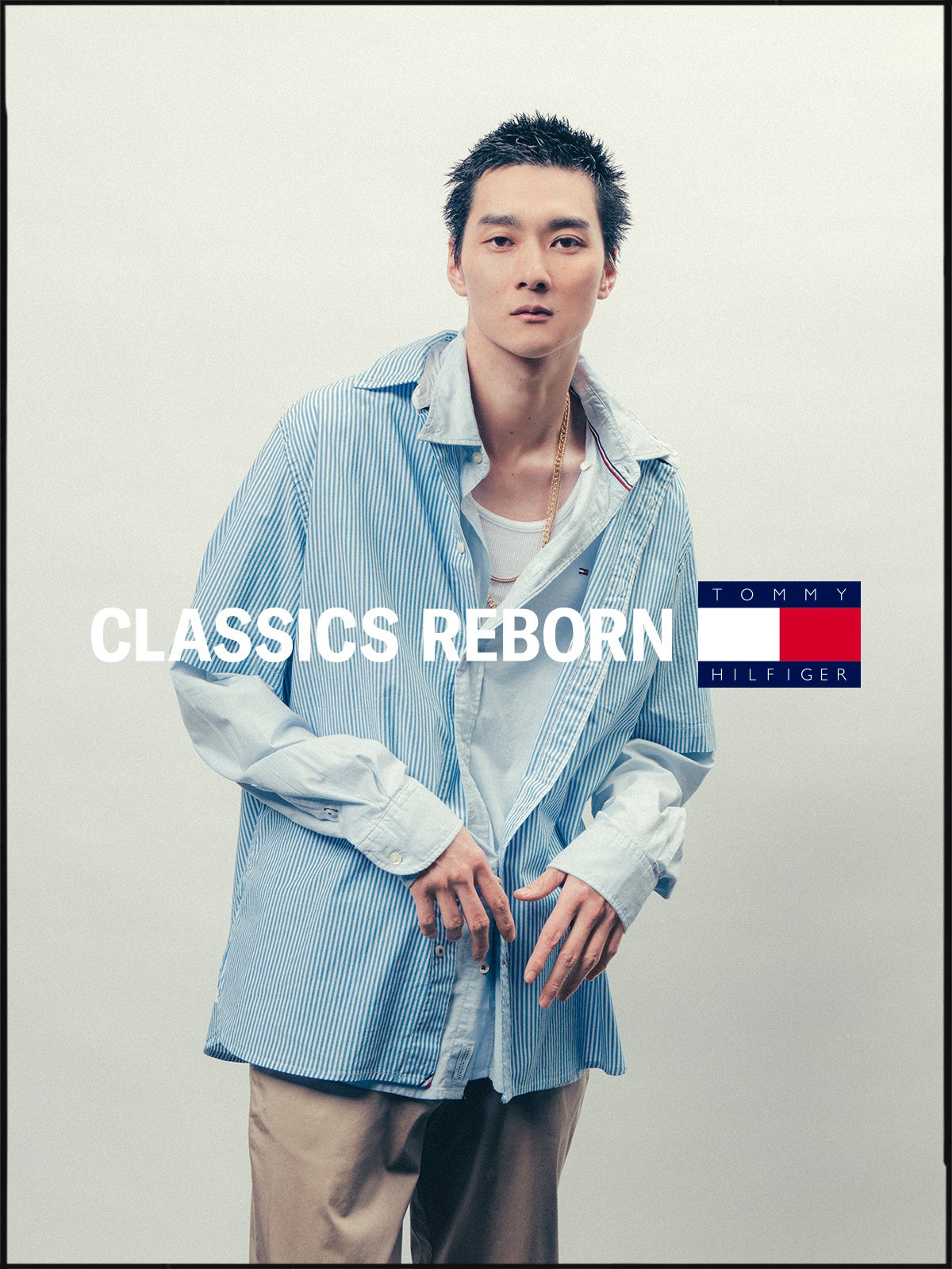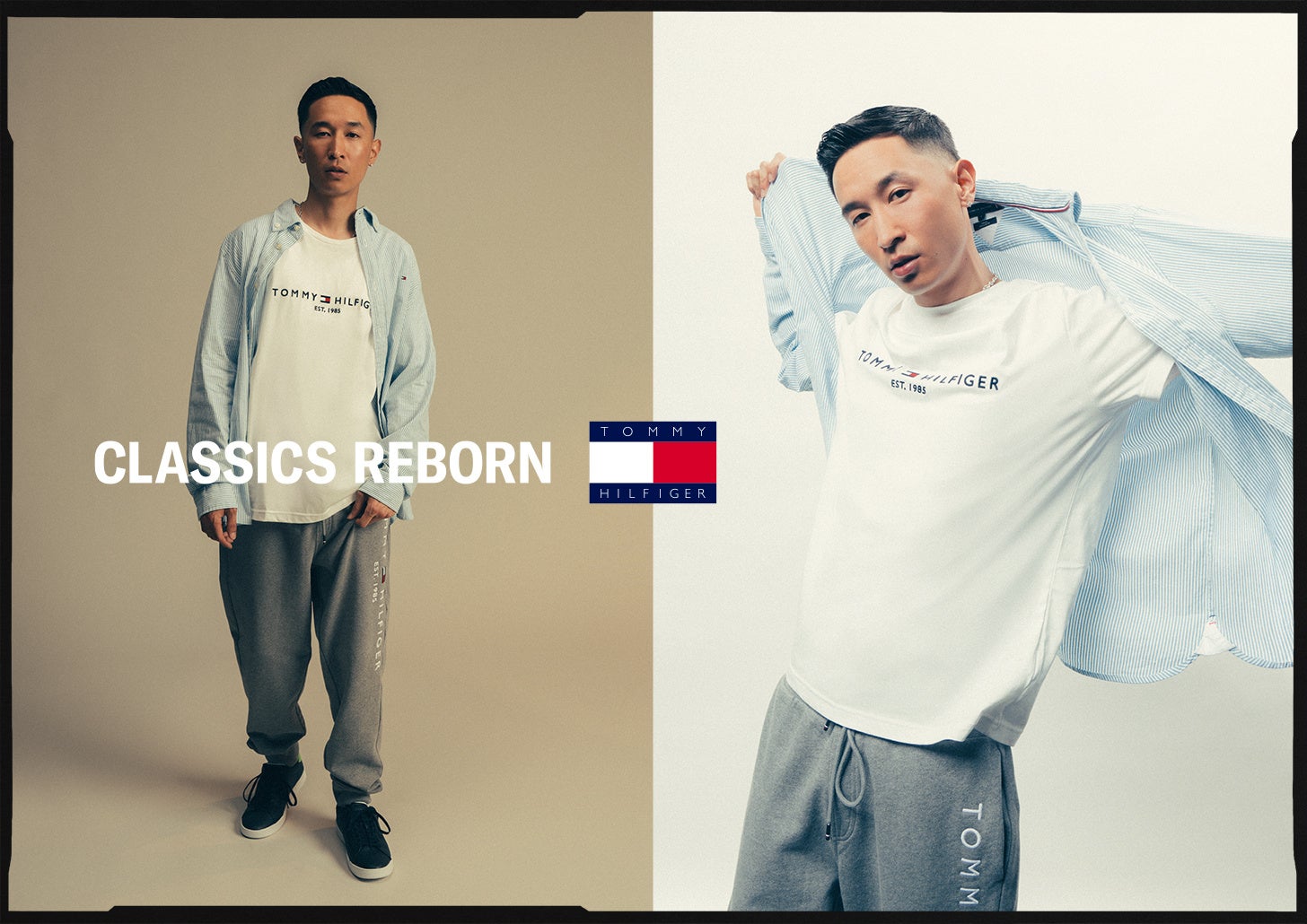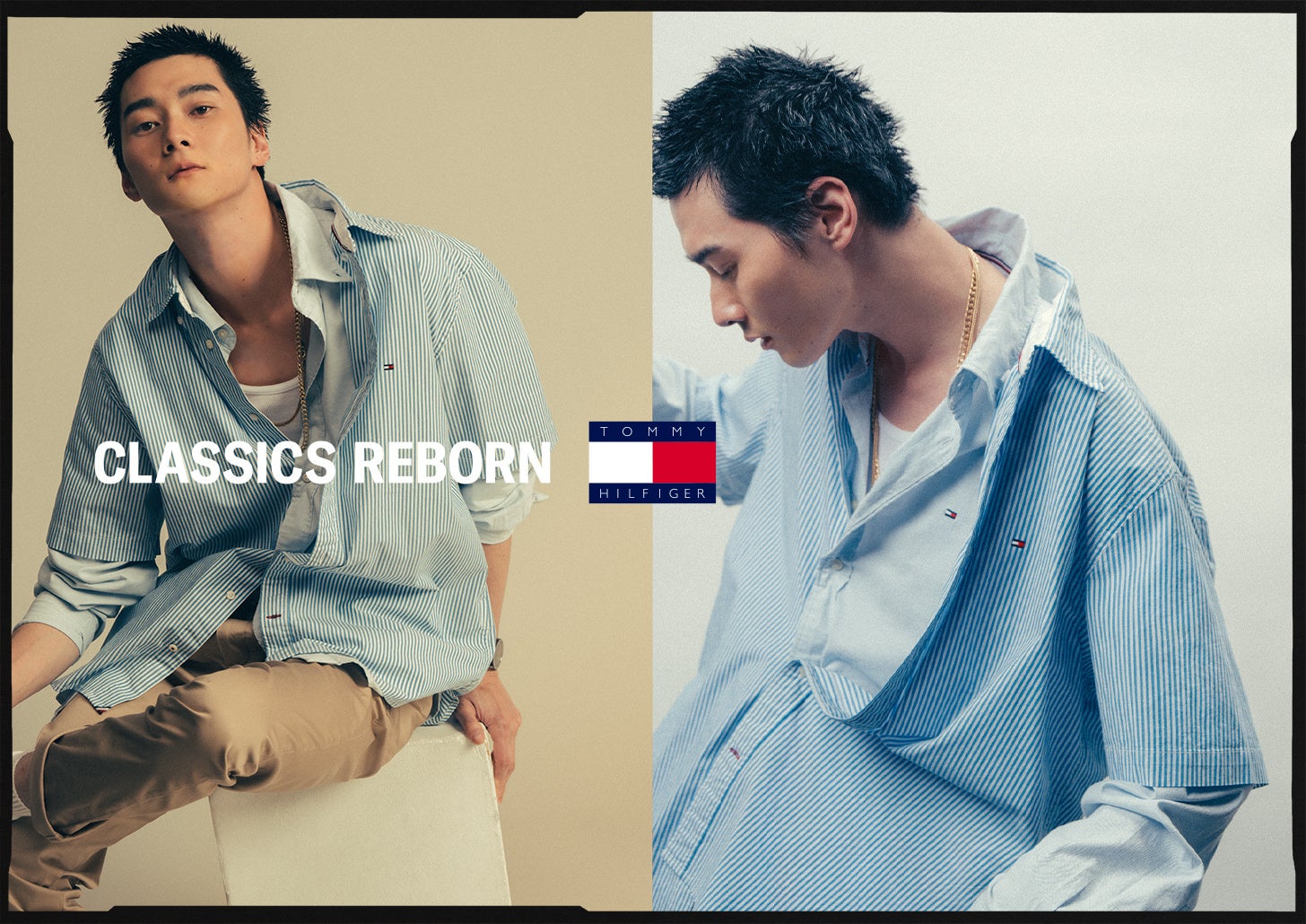 2023年春に、長きに渡って支持され続けるプレップクラシックを、新進気鋭のクリエイターと共に再定義するキャンペーン『CLASSICS REBORN』をグローバルでローンチ。「THモノグラム」を配したブレザーとチノのセット、工業用糸を採用したポップなハニカムセーター、ラグビーシャツと裏地のないパーカなど、エフォートレスな春の装いを演出するアイテムが揃います。
