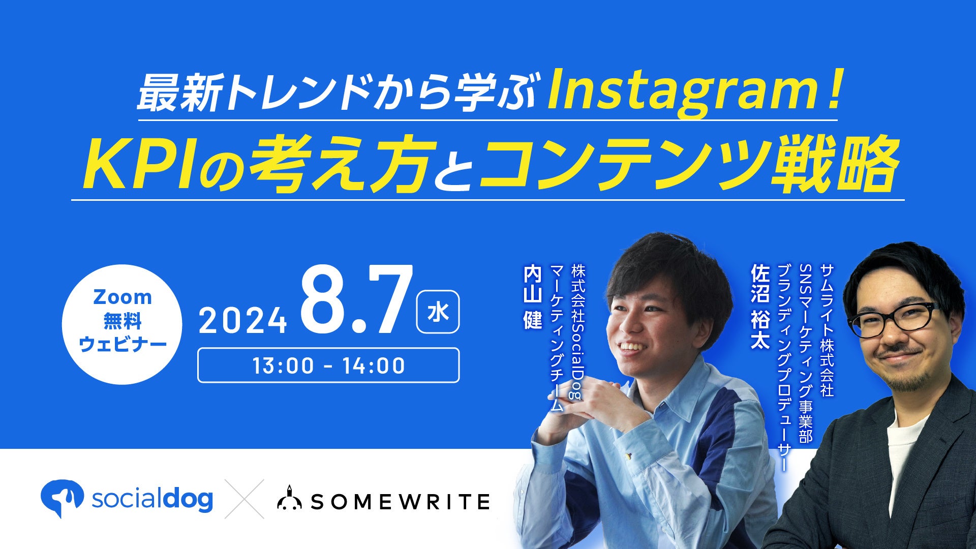 企業のInstagramマーケティングで売上という成果を出すためのポイントを事例を交えてご紹介!効果的な分析方法についても解説します(SocialDog×サムライト共催ウェビナー 8月7日開催)