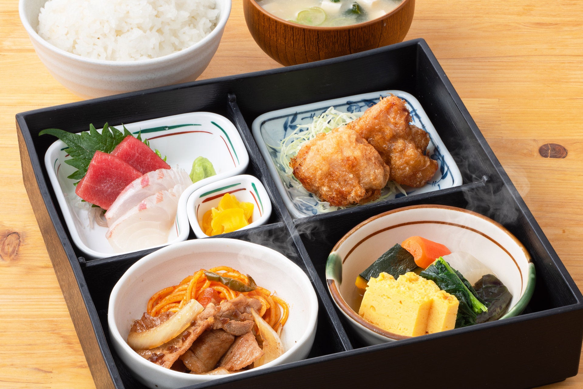 定食の中で、特にお得感を味わえるのがセットメニュー。人気のおかずが何種類も入った内容で、あれも食べたい、これも食べたいと迷ったら、セット一択です。セットの定食は全6種類。1日10食限定の「松花堂弁当(通常1,200円税込)」、「お得な和食セット(通常1,200円税込)」・「お得な中華セット(通常1,000円税込)」・「お得な洋食セット(通常1,000円税込)」。通常価格でも十分お得なのに、セール期間中はさらに200円OFF、充実度は、まさに青天井です。
