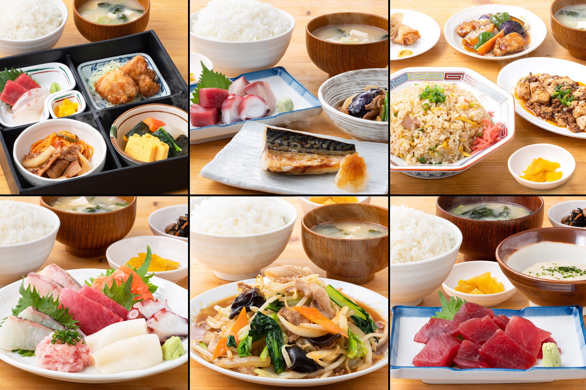 技術を持った職人がつくる和洋中100種類以上の豊富なメニューをリーズナブルな大衆価格で提供。定食を注文するもよし、つまみを片手に軽く一杯と、老若男女どんなシチュエーションでも高いコストパフォーマンスで満足できます。また、ご飯の量が選べるのも人気の一つ。「おちょぼ(150g)」や「チョモランマ(800g)」まで、好みの量が選べます。