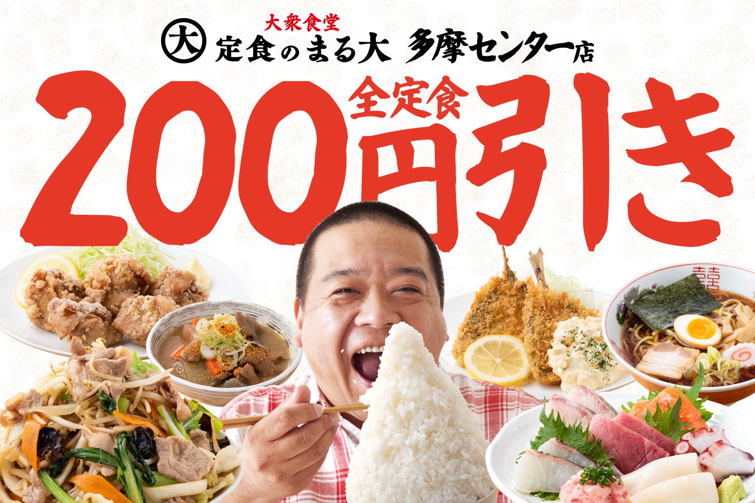 株式会社大庄(東京・大田区、代表取締役社長 平 了壽)は、親しみやすさとボリューム満点の手づくり料理が魅力の大衆食堂『定食のまる大』多摩センター店(東京都多摩市・京王多摩センター駅内)を、2024年11月29日(金)、開放感のあるフロアに一新し、リニューアルオープンします。そこで、リニューアルを記念して、「肉野菜炒め定食(通常950円)」や「特上刺身定食(通常1250円)」といった名物定食や、「月曜限定 豚ニラ スタミナ炒め定食(通常900円)」などの曜日限定の定食を含む全定食33品を対象とした200円OFFセールを実施。当店の魅力をより多くの方々に知っていただくため、11月29日(金)~12月3日(火)の5日間連続で開催します。