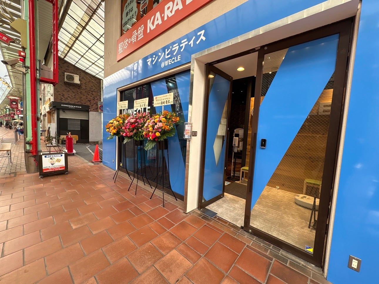 活気のある神戸元町商店街に開店してから、約3年半が経過し、今も多くのお客様にご利用いただいております。開店当時WECLEは、親しみやすく安心感のある緑色をブランドカラーとして事業拡大を目指し、現在は16店舗を運営するピラティス専門店へと成長しました。