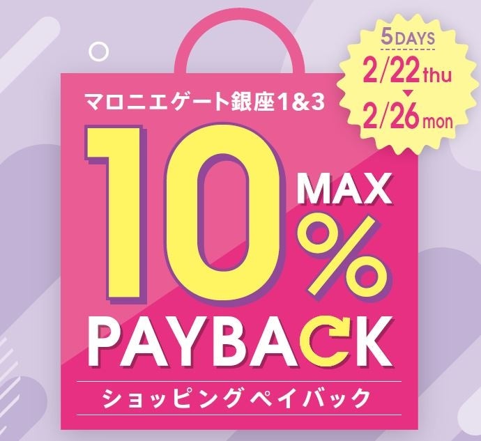 【マロニエゲート銀座1】2月22日(木)~2月26日(月)まで「最大10%還元!ショッピングペイバック」開催!