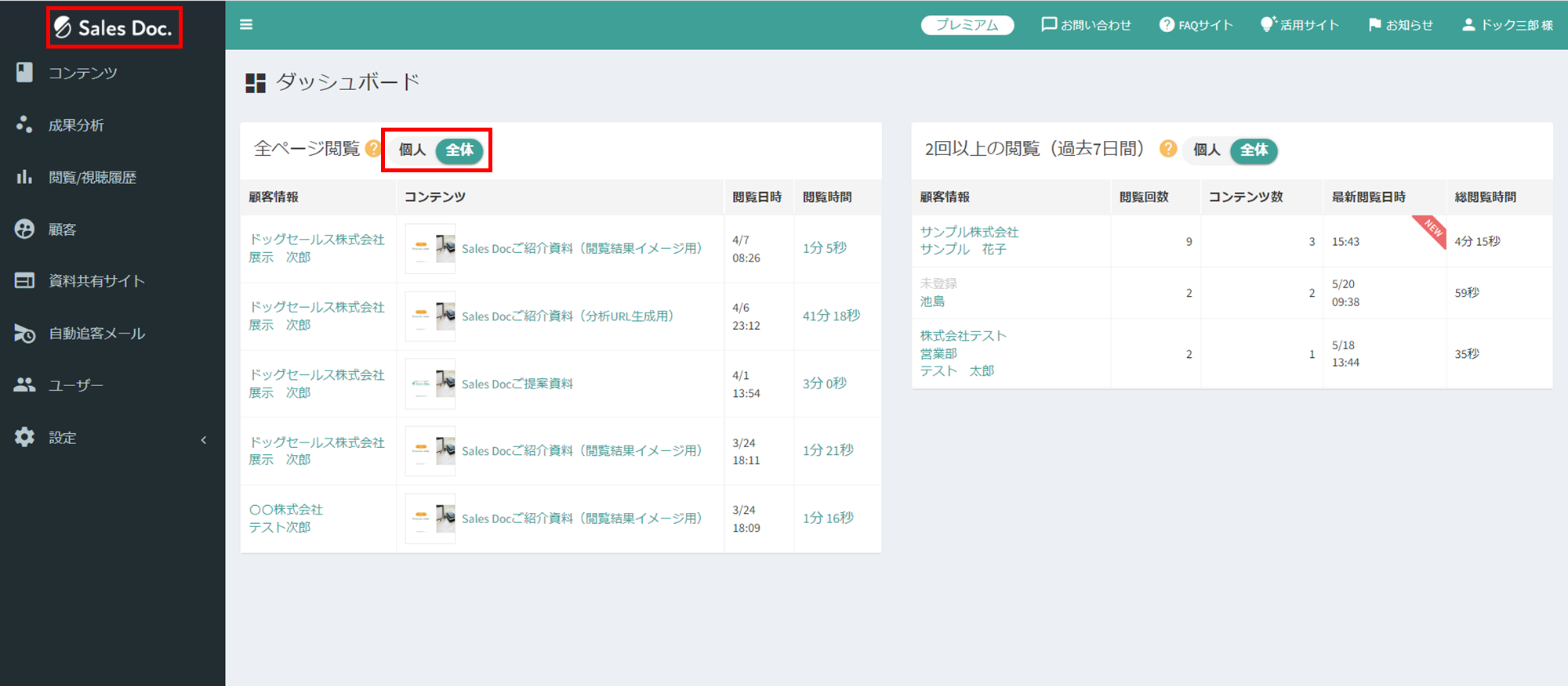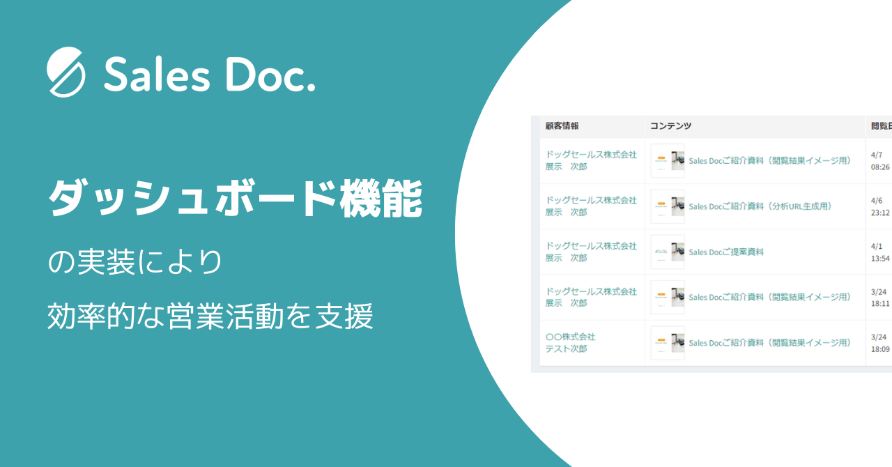 営業向け資料トラッキングツール『Sales Doc(セールスドック)』、「ダッシュボード」機能の実装により効率的な営業活動を支援