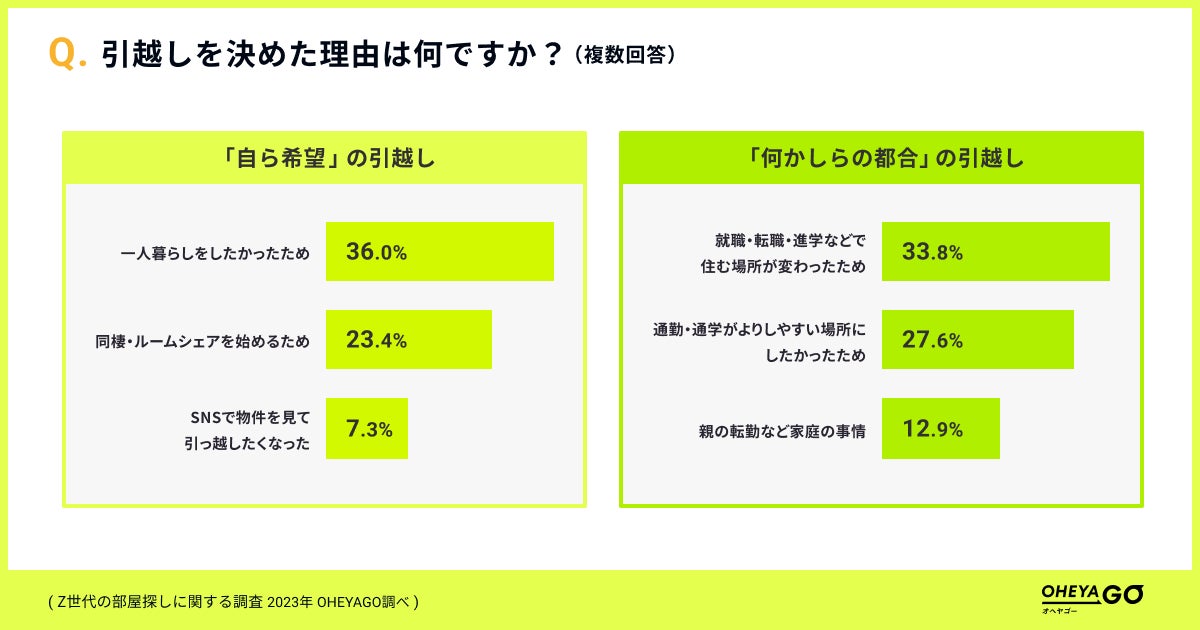 ◆ Z世代が引越しを決めた理由、「一人暮らしをしたかったから」が最多