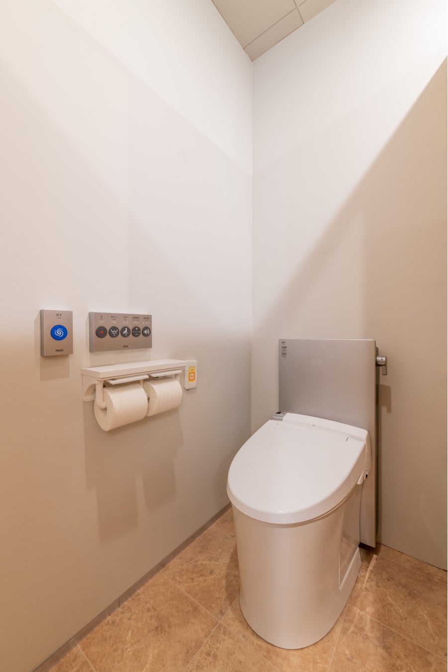 シャワートイレの給水ホースや電源コード、止水栓が露出し雑多な空間になったり、トイレ自身の寸法の大きさにより窮屈な空間になったりするなど、従来のトイレが抱えていた課題を解決し、便器を交換するだけでトイレ空間を美しく演出できる設計となっています。