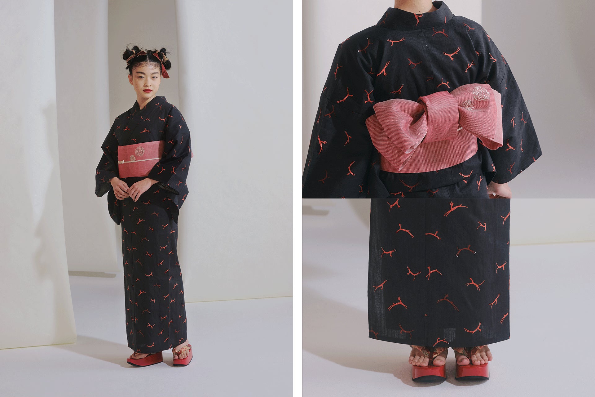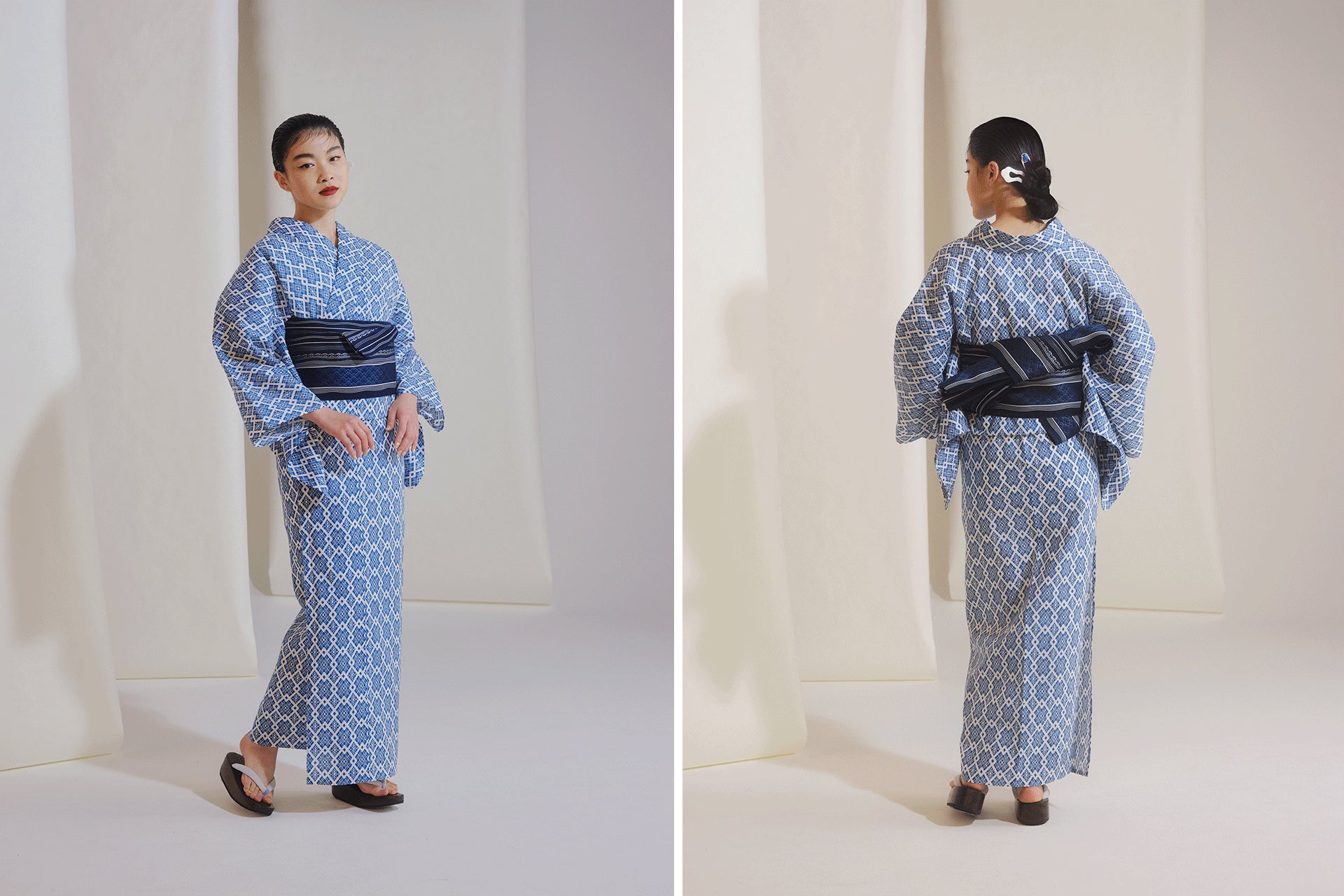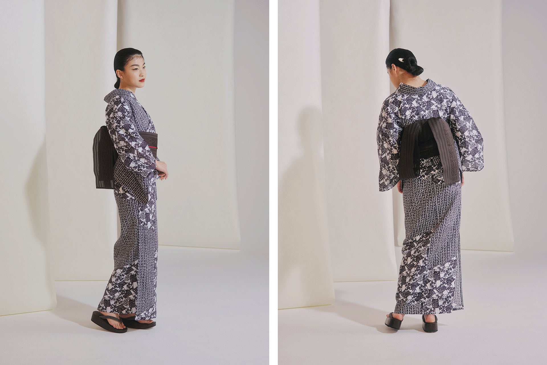 日本の美意識に根差した有田焼の器や浮世絵からインスパイアされ、洒落を効かせたデザインのゆかたです。