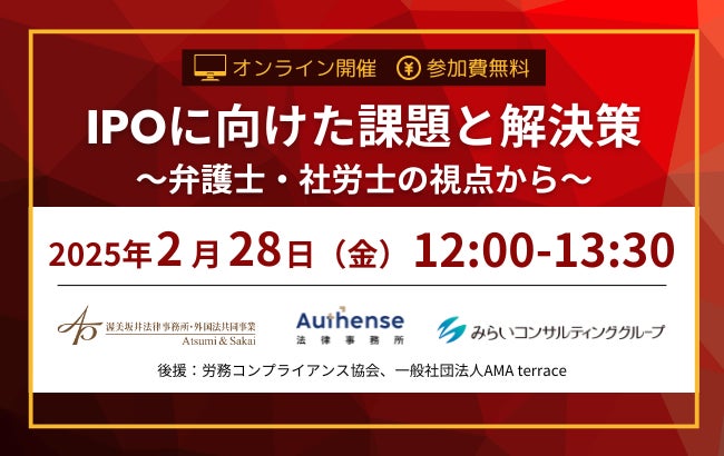 【無料ウェビナー開催2025.2.28】弁護士 西尾 公伸が「IPOに向けた課題と解決策~弁護士・社労士の視点から~」に登壇|Authense法律事務所