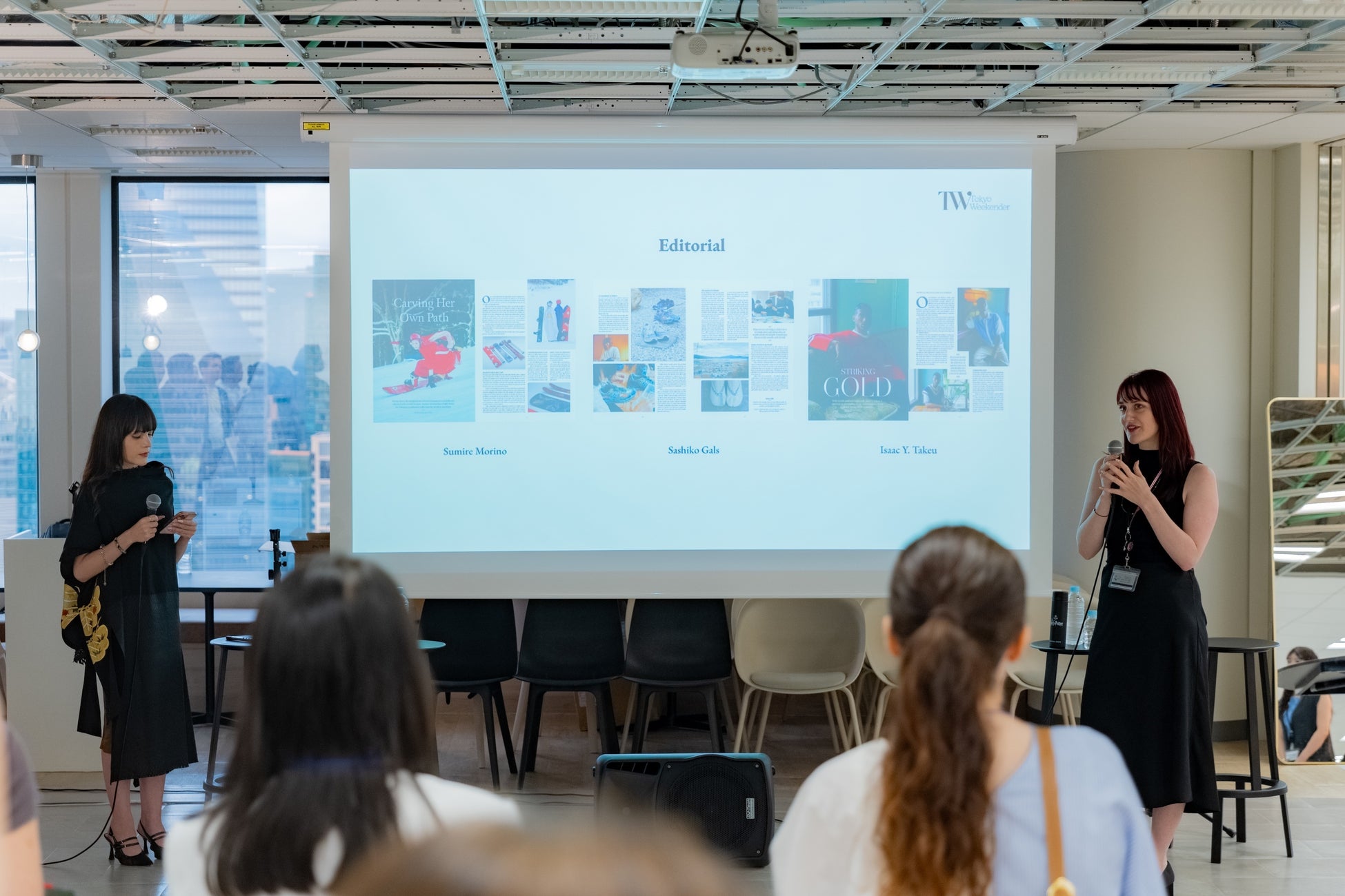 当日は、『Tokyo Weekender』Editorial DirectorのCallieが登壇し、「MADE IN JAPAN」特集に込めた想いとして「私たちが伝えたいのは、美しい製品の裏にある“人の物語”です」と語り、日本のクラフツマンシップを象徴する3つの注目事例を紹介しました。今回は、刺し子でスニーカーを装飾する「Sashiko Gals」に関するクイズも行われ、正解者には「ワーナー ブラザース スタジオツアー東京」の限定グッズが贈られるなど、和やかな雰囲気に包まれました。