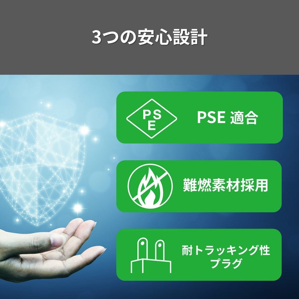 最大20W出力のUSB PD対応USB Type-Cポートを備え、スマートフォンなどの機器を急速充電できます。USB Type-Aポートも1つ搭載し、同時に充電できます。