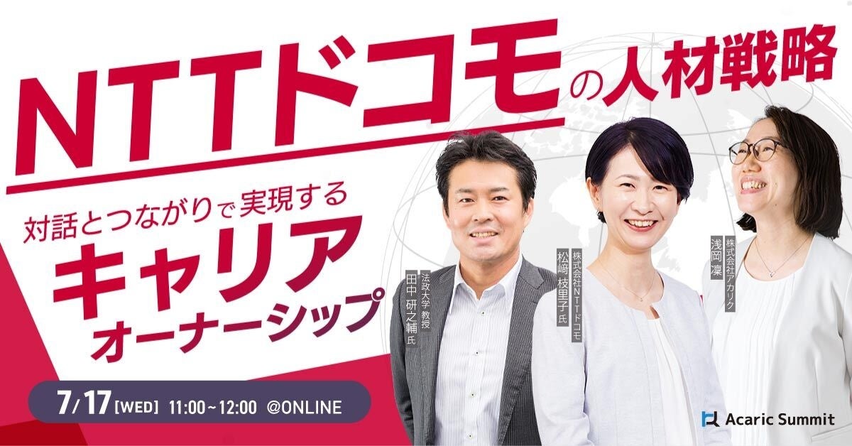2024年7月17日(水)11:00 - 12:00 @オンライン【株式会社NTTドコモ 元キャリアデザイン担当課長 松﨑氏 × 法政大学 キャリアデザイン学部教授 田中氏が登壇】