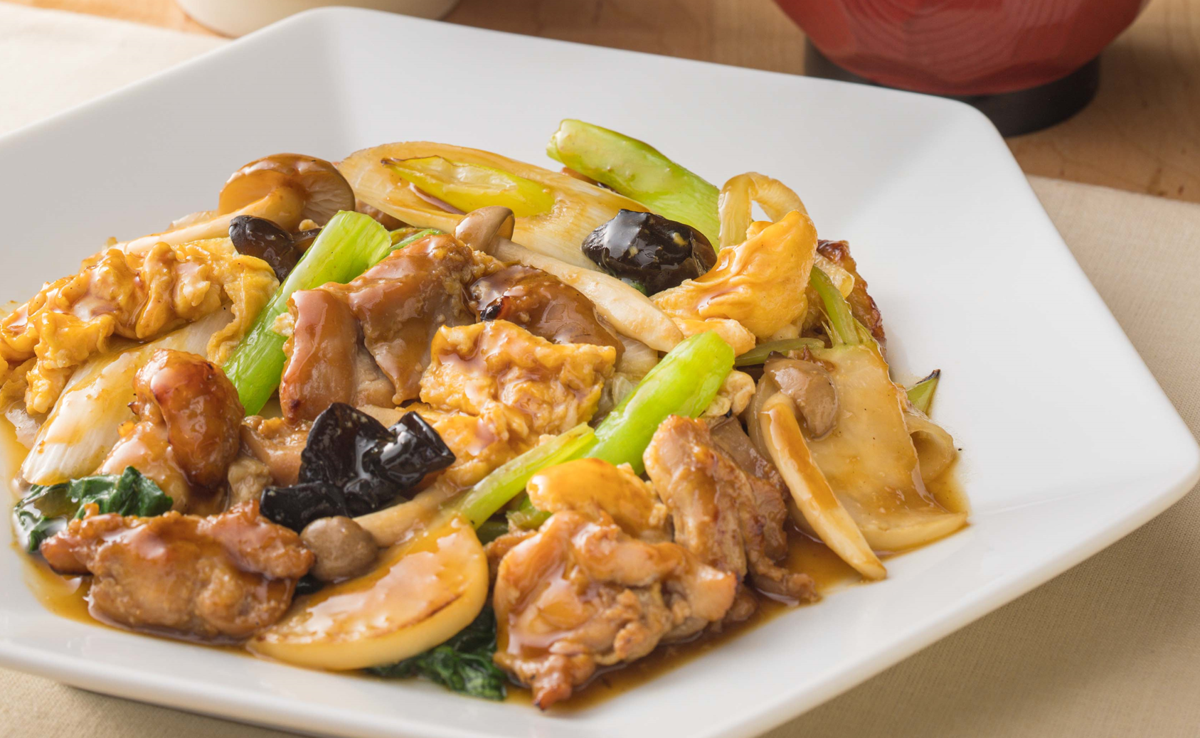 醤油麹に漬け込んだ鶏もも肉を炭火で香ばしく焼き、オイスターソースでコク旨に仕上げました。醤油麹はお肉をやわらかくし、旨味を引き出してくれるだけでなく、疲労回復や免疫力アップにも効果があると言われています。炭火焼き(※)の香ばしい風味も味わえる、“こってり”なのに健康的な玉子炒めです。