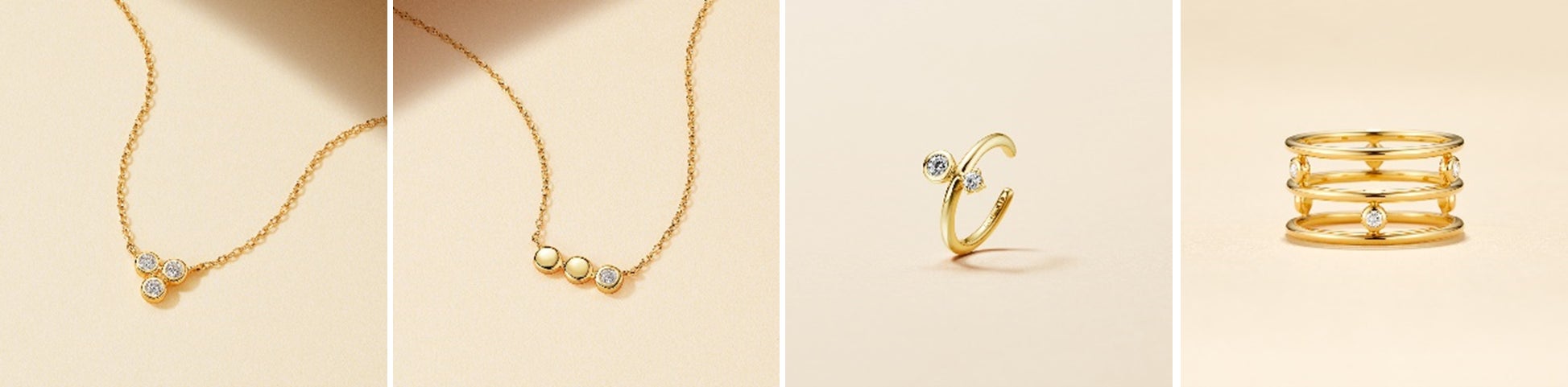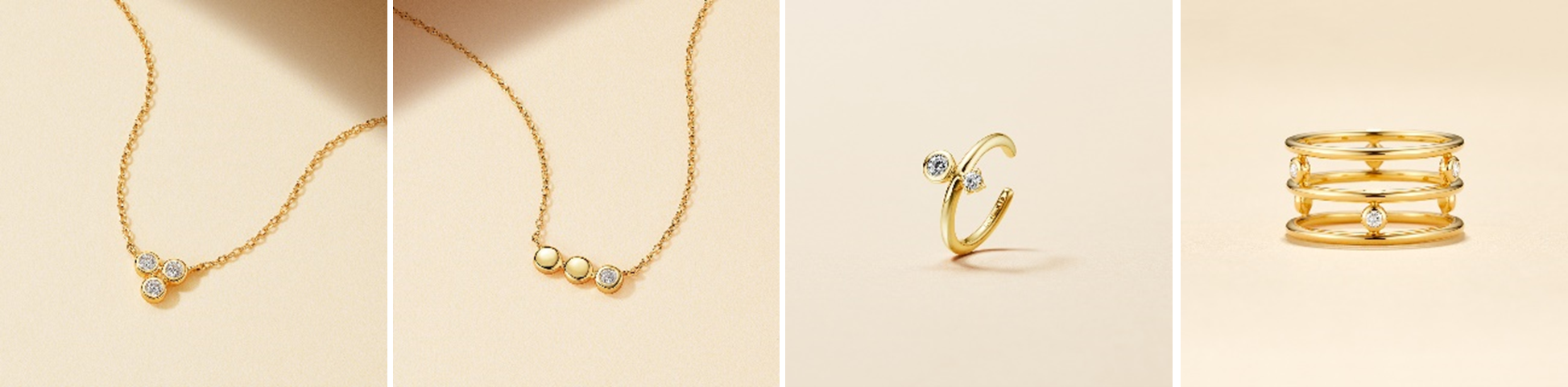 光を受けることでより一層増す、地金の艶感とラボグロウンダイヤモンドの輝きが特徴的な、「Ray of Light」コレクションの新作が登場。トレンドのイヤーカフや、シーンや気分に合わせてリバーシブルで楽しめるネックレス・リングもラインアップ。繊細な地金のラインからラボグロウンダイヤモンドが覗く洗練されたヘルシーなジュエリーは、主張しすぎないサステナブルアクションのスタートを後押しします。