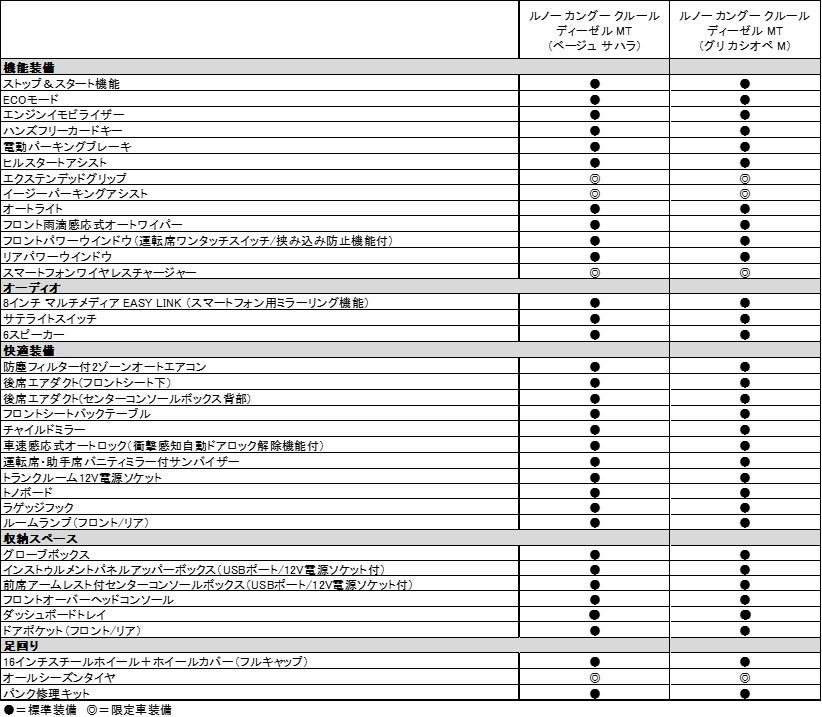 ルノー カングー クルール ディーゼル MT主要装備