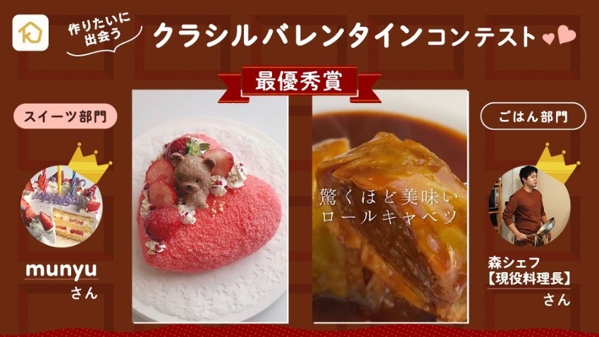 国内No.1のレシピプラットフォーム「クラシル」がバレンタインコンテストの結果を発表