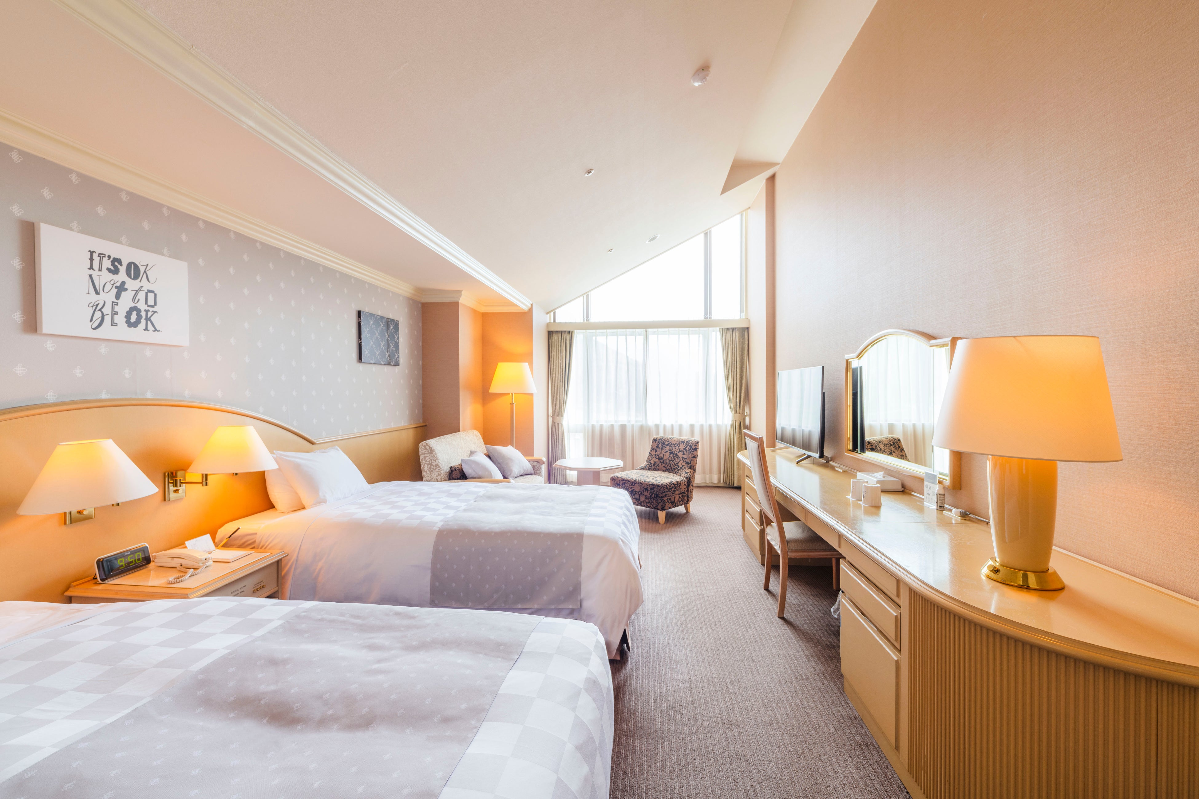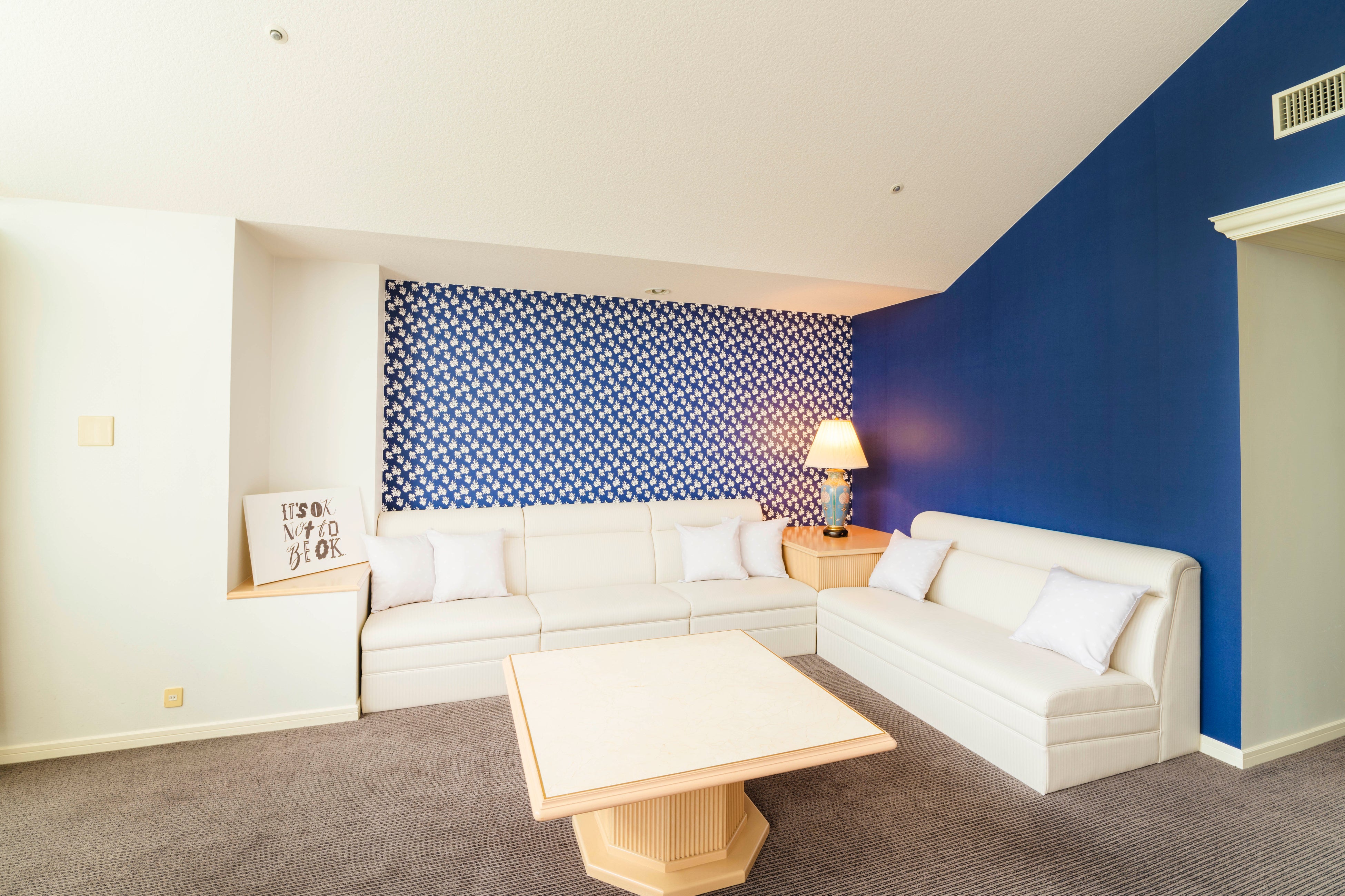 ジュニアスイートルームは、人気イラストレーターのSHOGO SEKINE氏がデザインしたイラストやロゴが部屋のアクセントになっています。