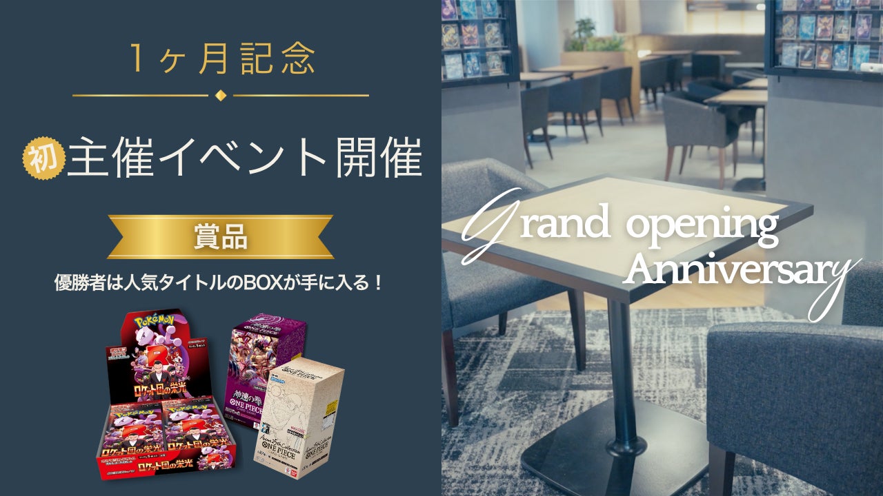 「cardéria(カーデリア)池袋店」は、「Card Community Café ~トレカの未来を、もっと快適に、もっと楽しく~」をコンセプトに、トレーディングカードの売買だけでなく、カードを通じたコミュニティ形成の場として多くのお客様にご利用いただいてまいりました。このたび、グランドオープン1ヶ月を迎えるにあたり、日頃のご愛顧に感謝の気持ちを込めて、以下の記念企画を実施いたします。