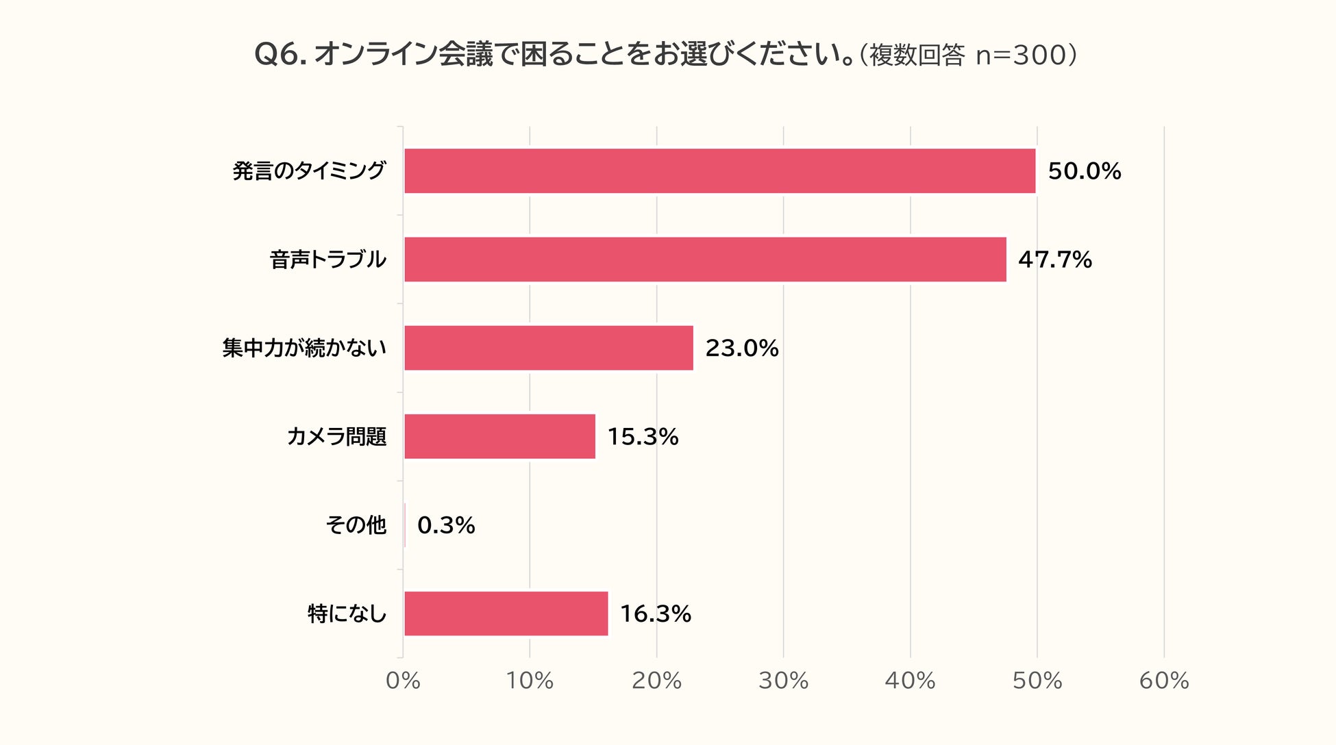 Q6.オンライン会議で困ることをお選びください。(複数回答 n=300)